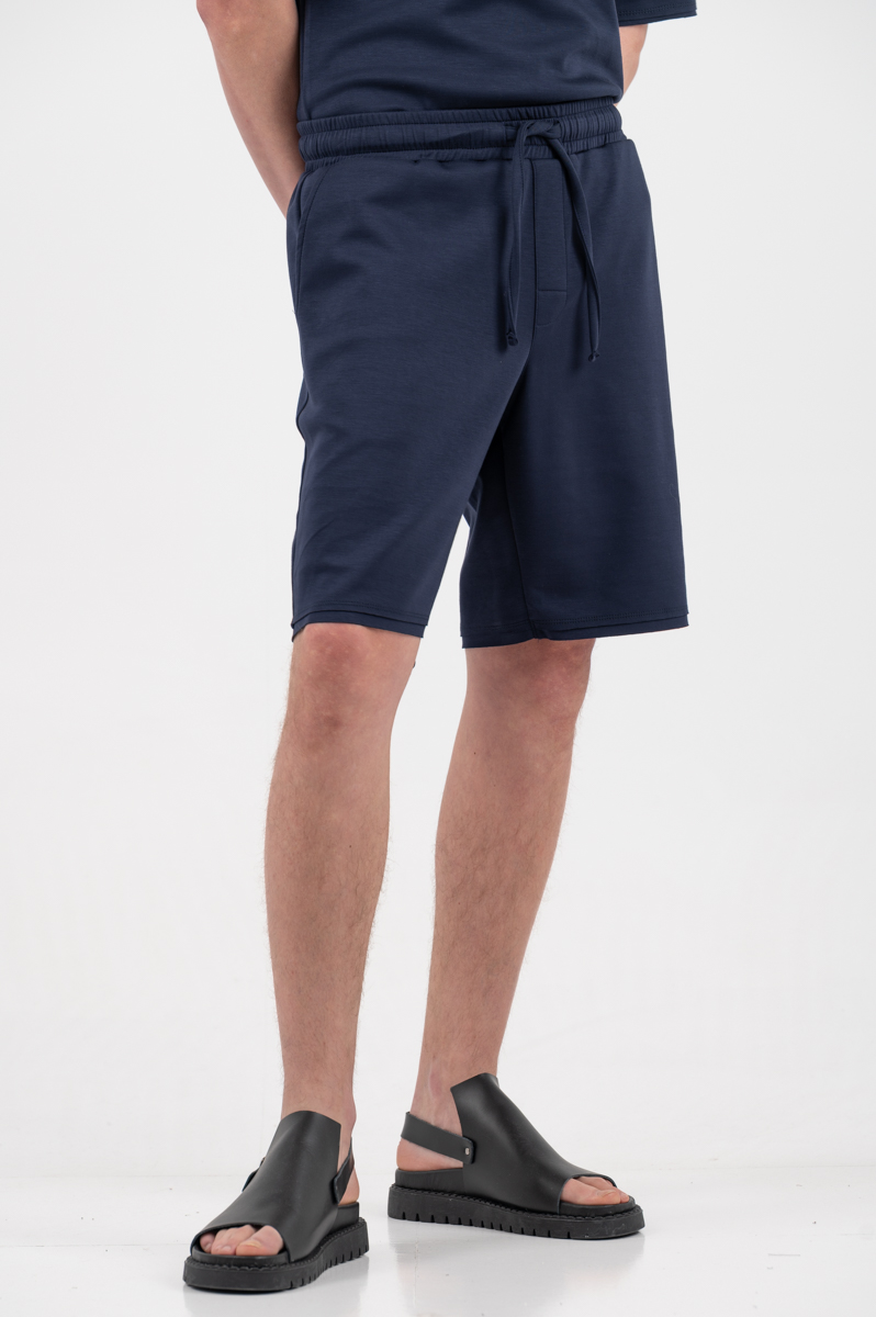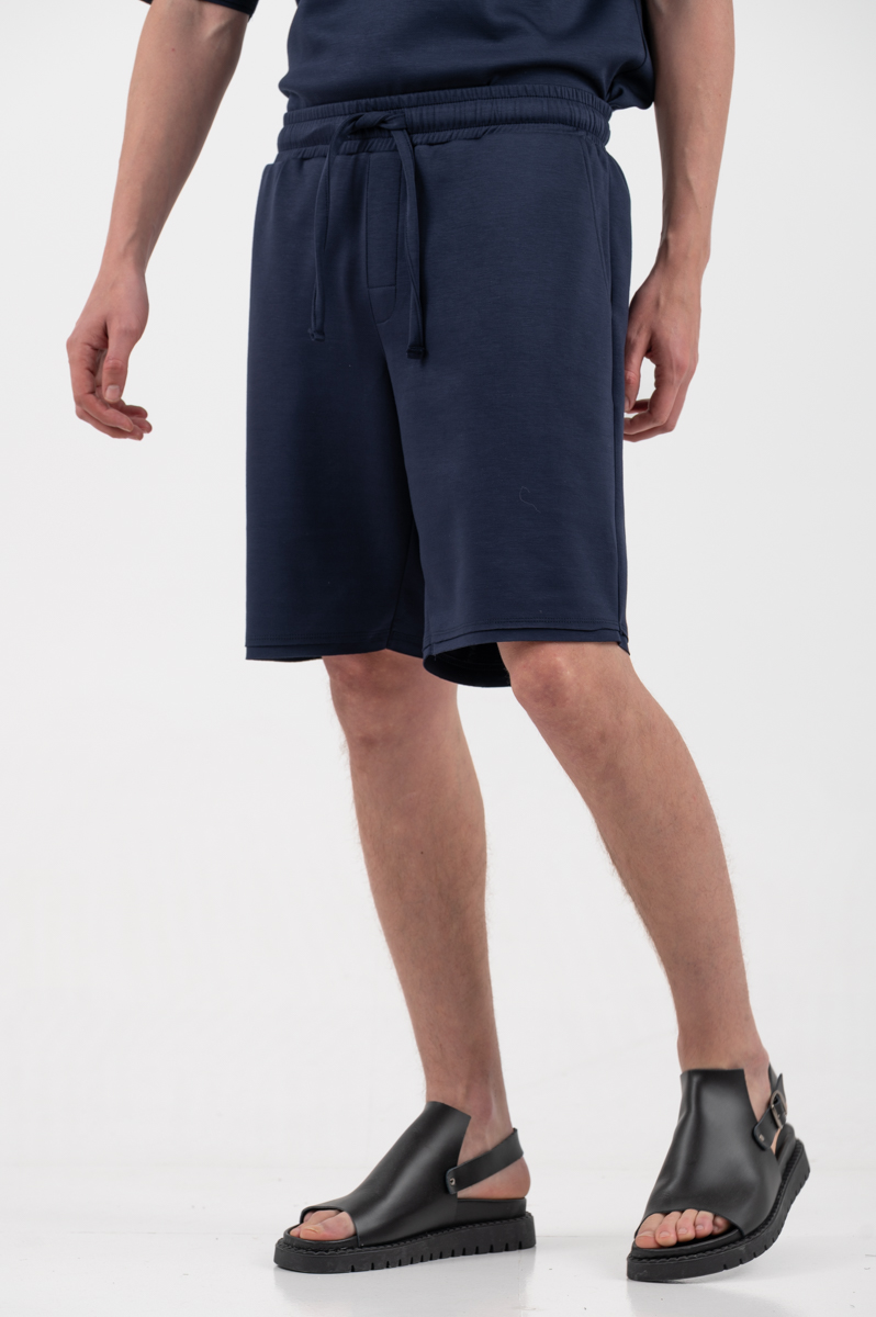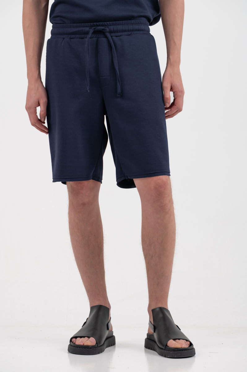 -Βερμούδα σε ύφασμα comfort με λάστιχο και κορδόνι στη μέση
