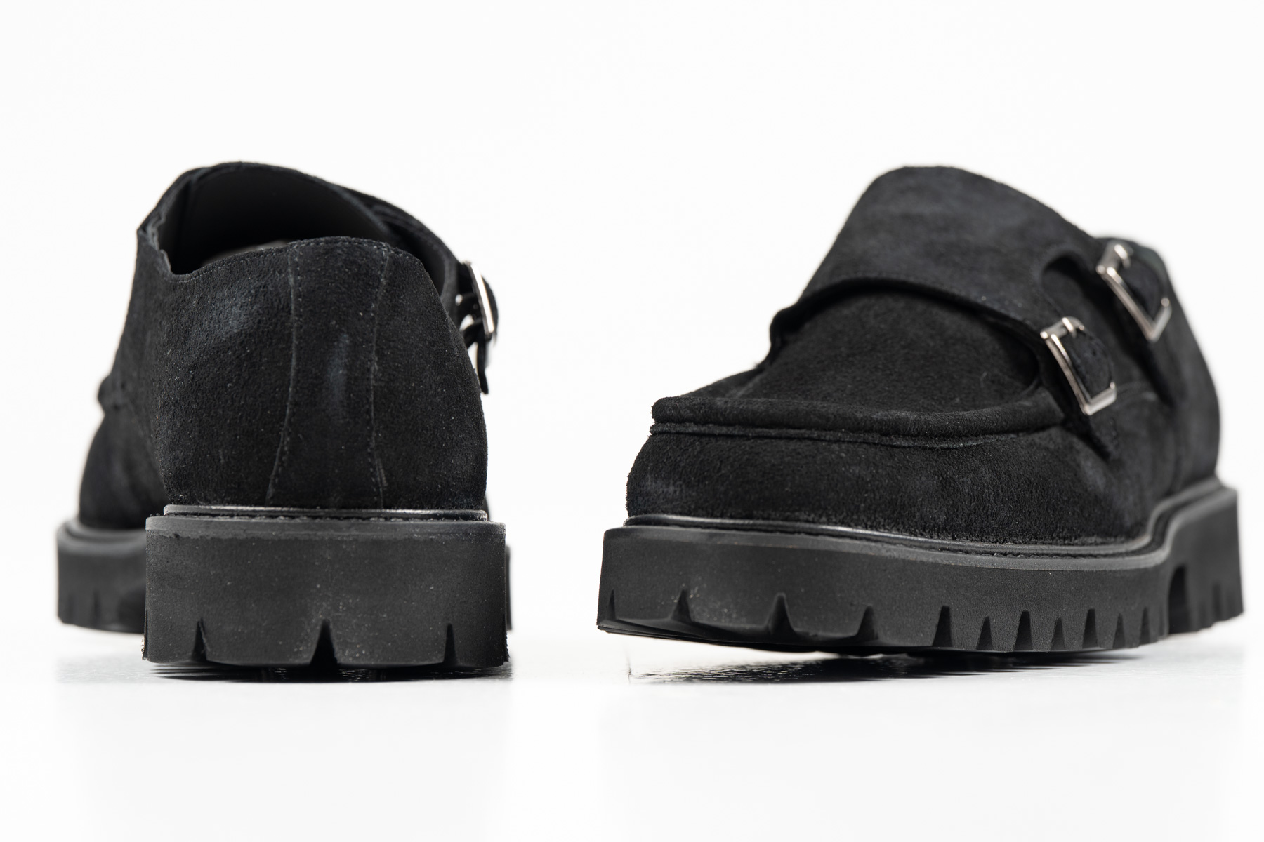 -Δερμάτινο Loafer σε σουέτ δέρμα και σχεδιασμό double monk
