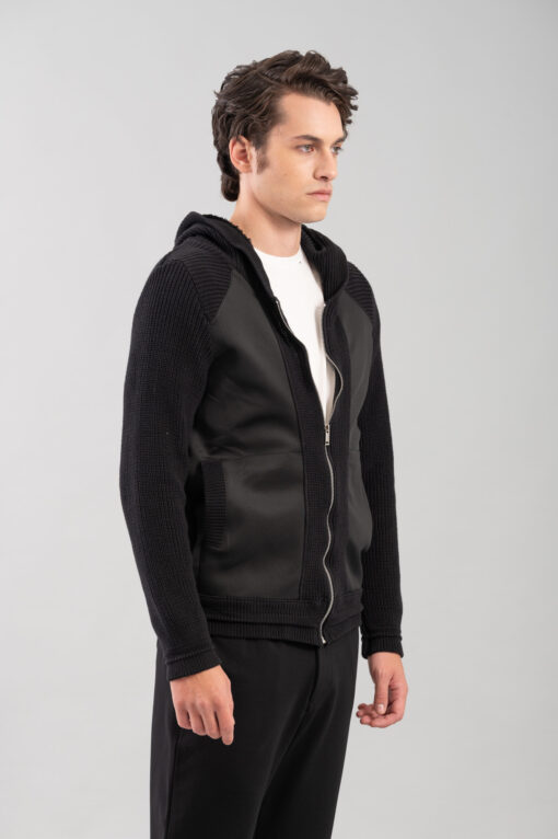 -Ζακέτα Vittorio πλεκτή με κουκούλα κλείσιμο με φερμουάρ και τσέπες στο πλάι.
