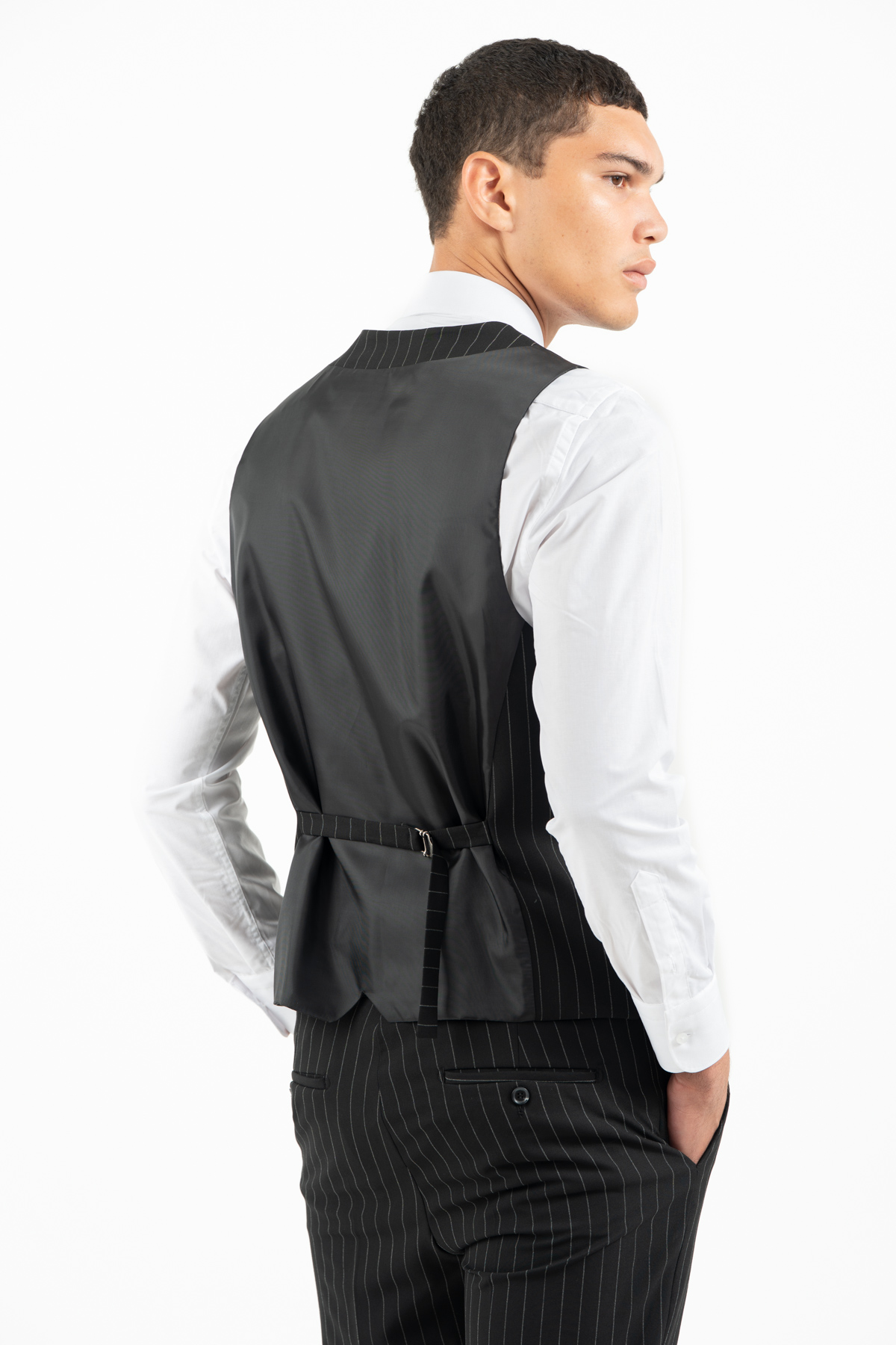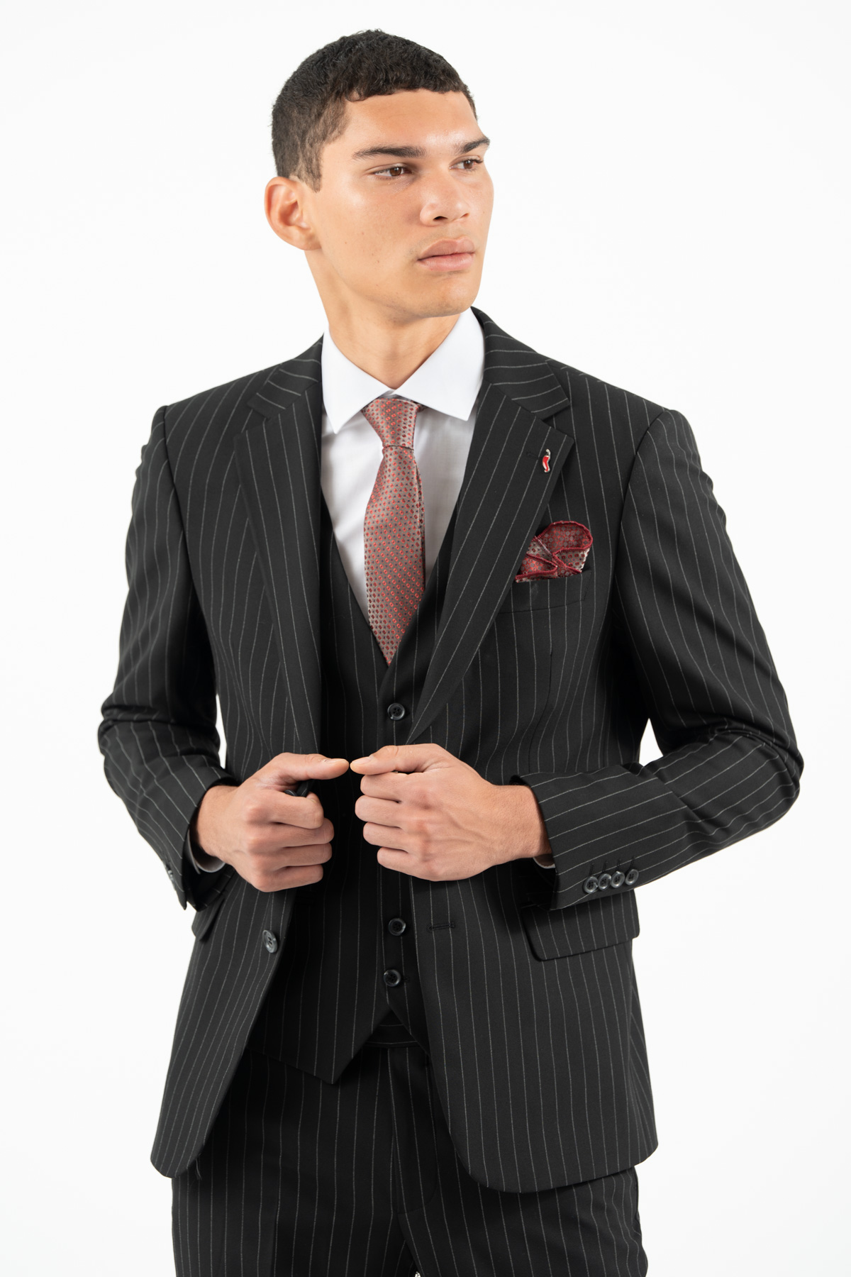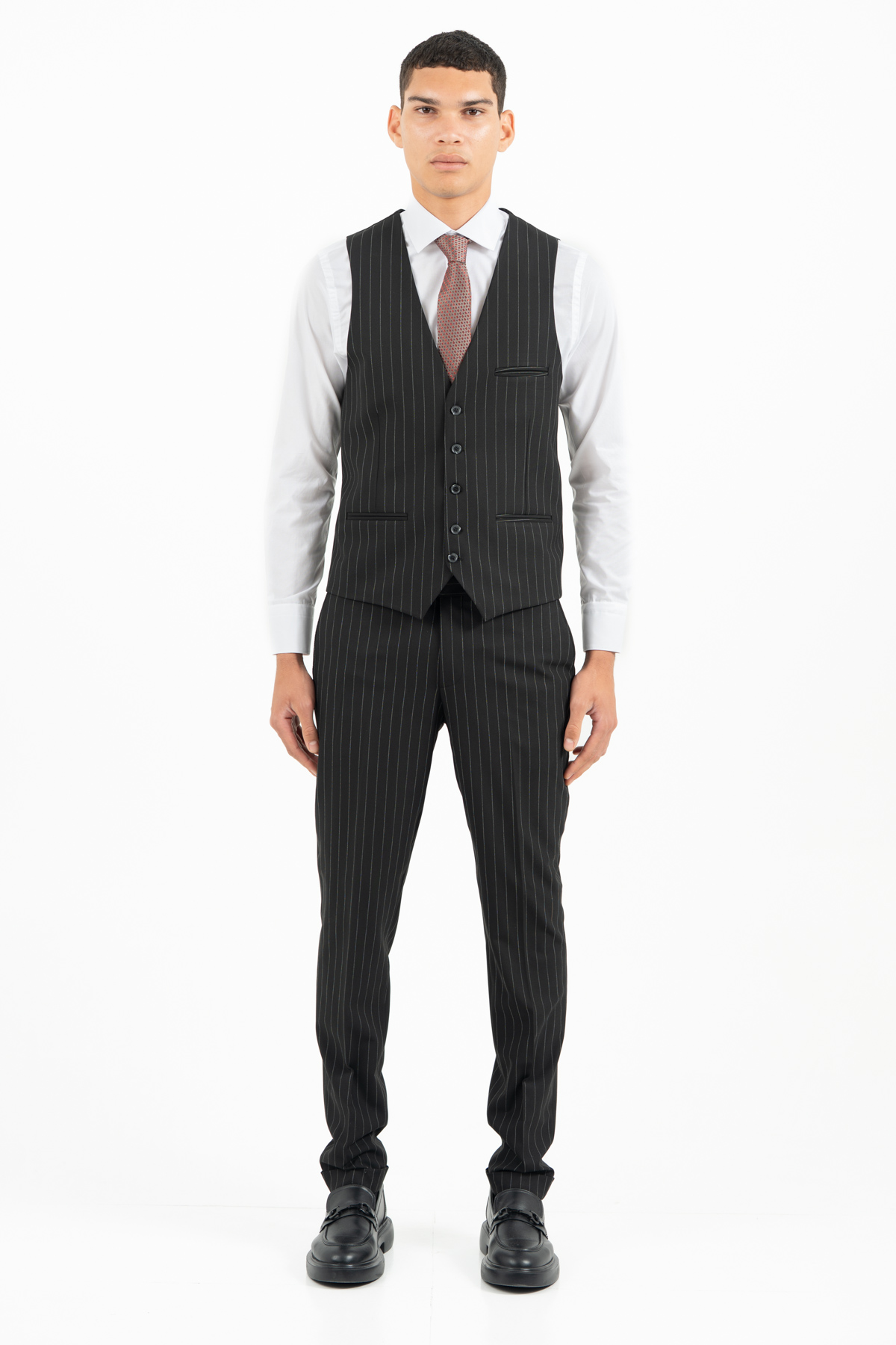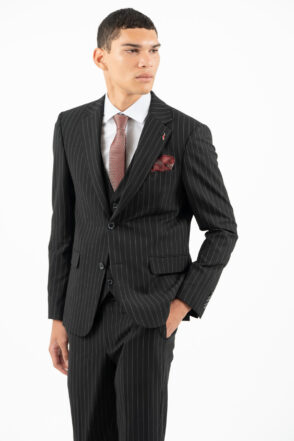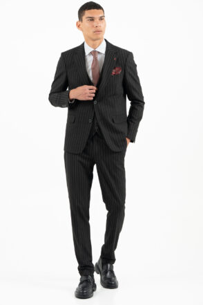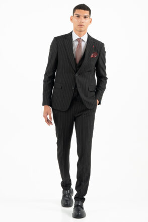 -Κοστούμι ριγέ σετ με γιλέκο σε slim fit γραμμή