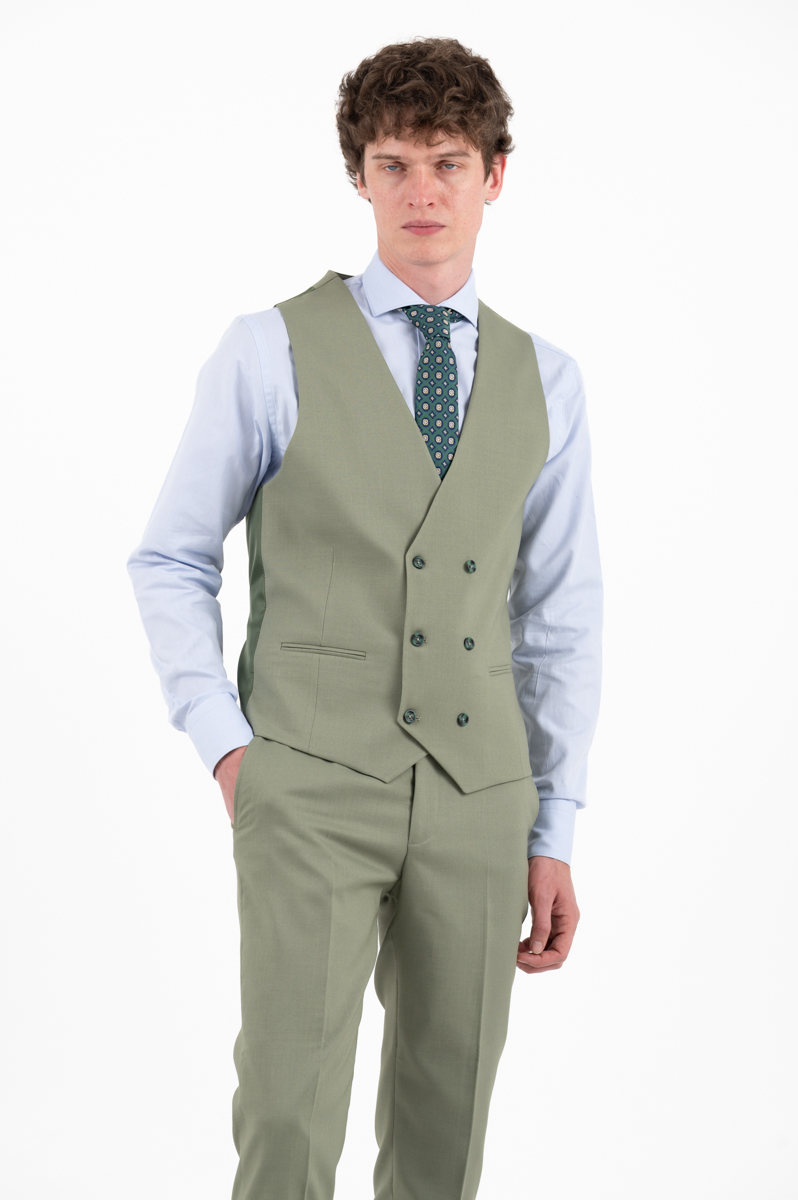 -Κοστούμι σετ με σταυρωτό γιλέκο σε ύφασμα με ελαστικότητα που προσφέρει εξαιρετική άνεση.