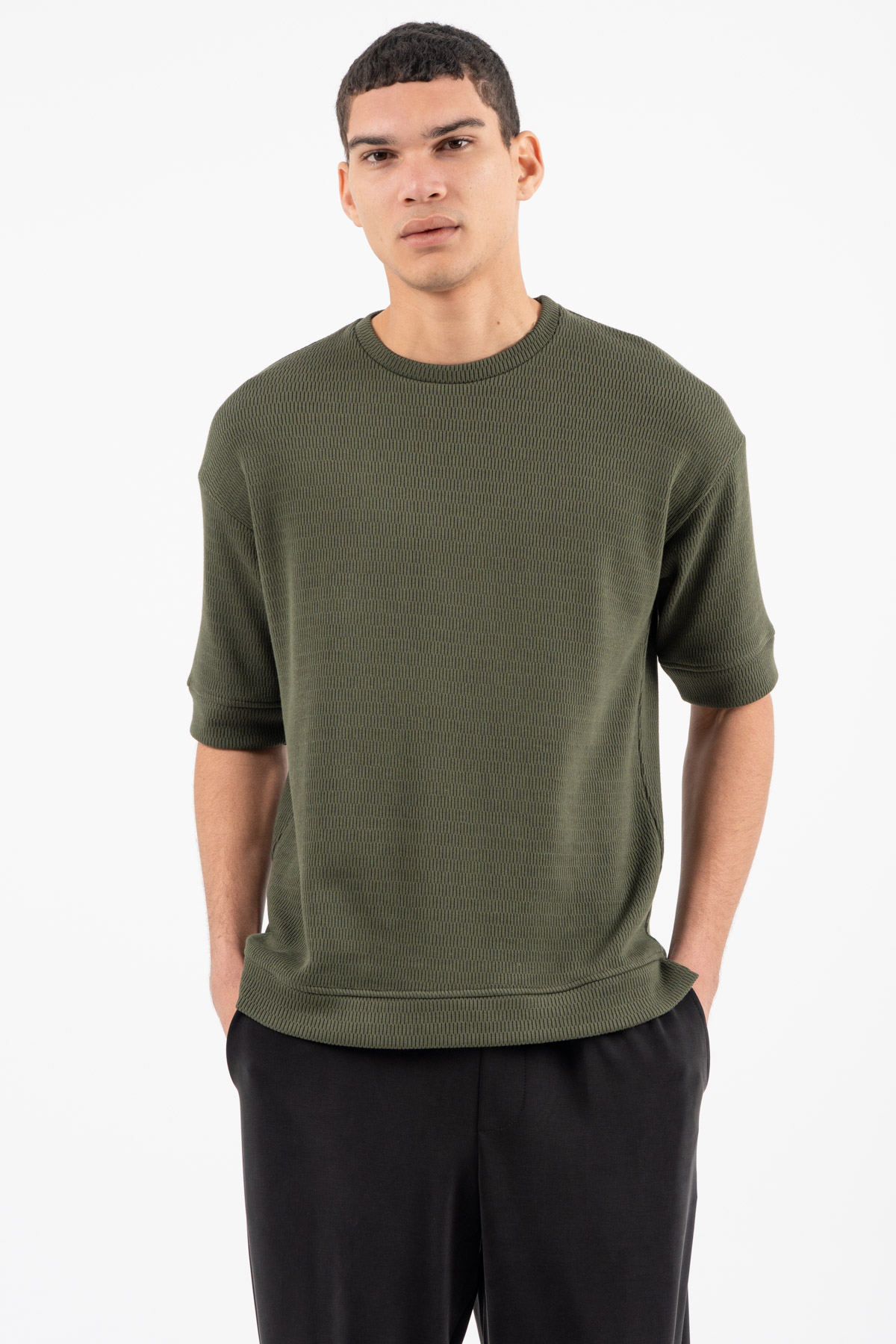 -Μπλούζα oversized σε ύφασμα με ζακάρ πλέξη