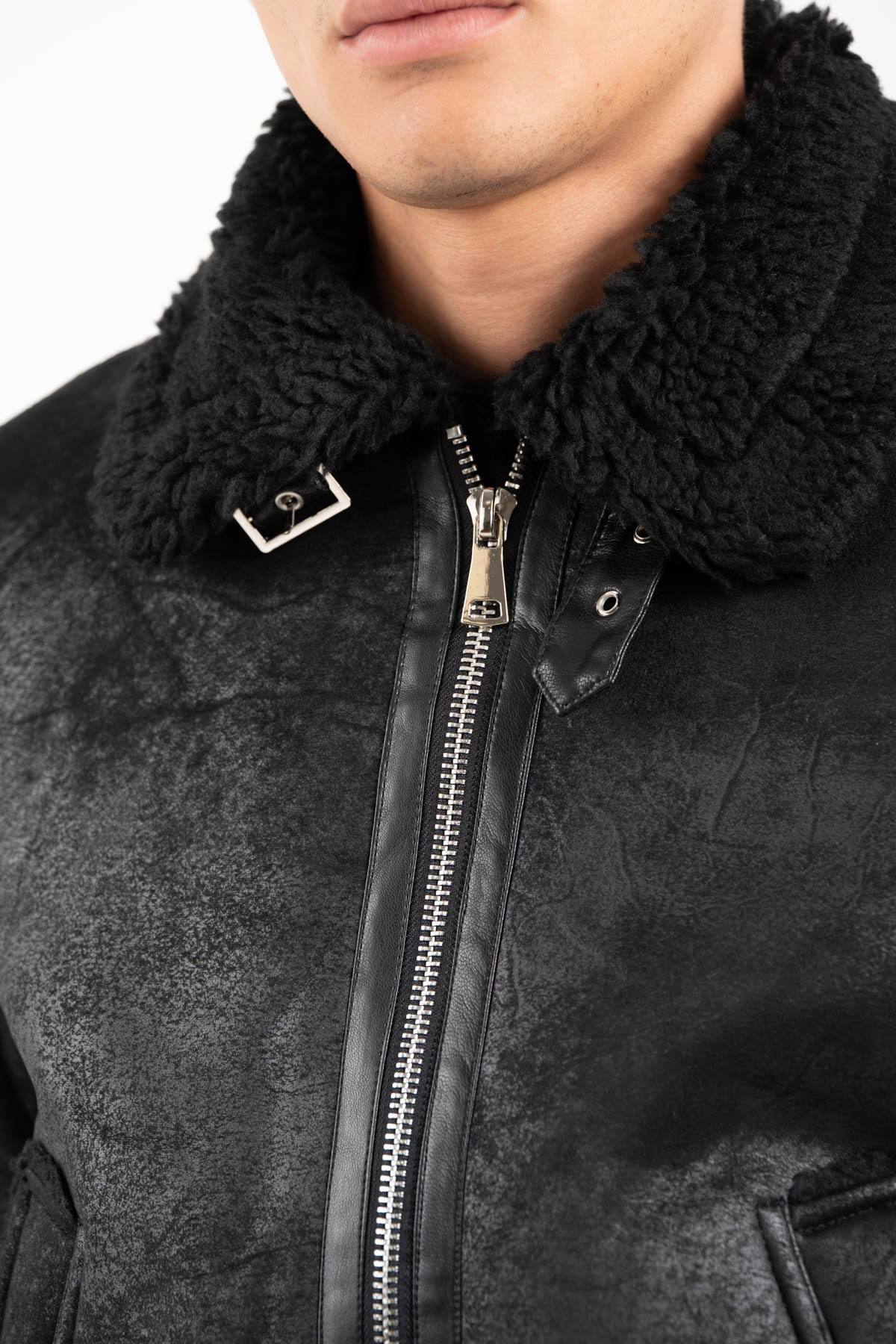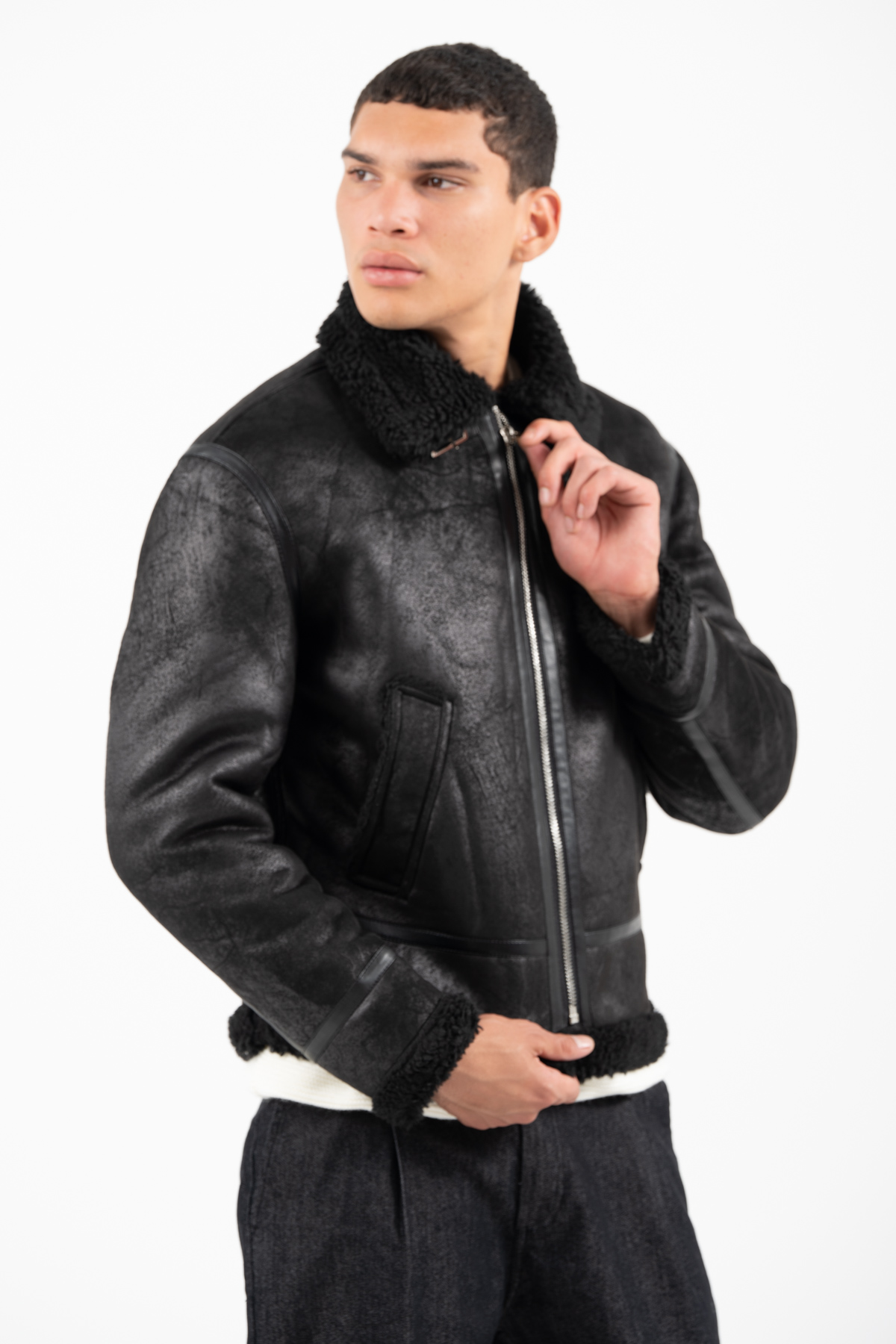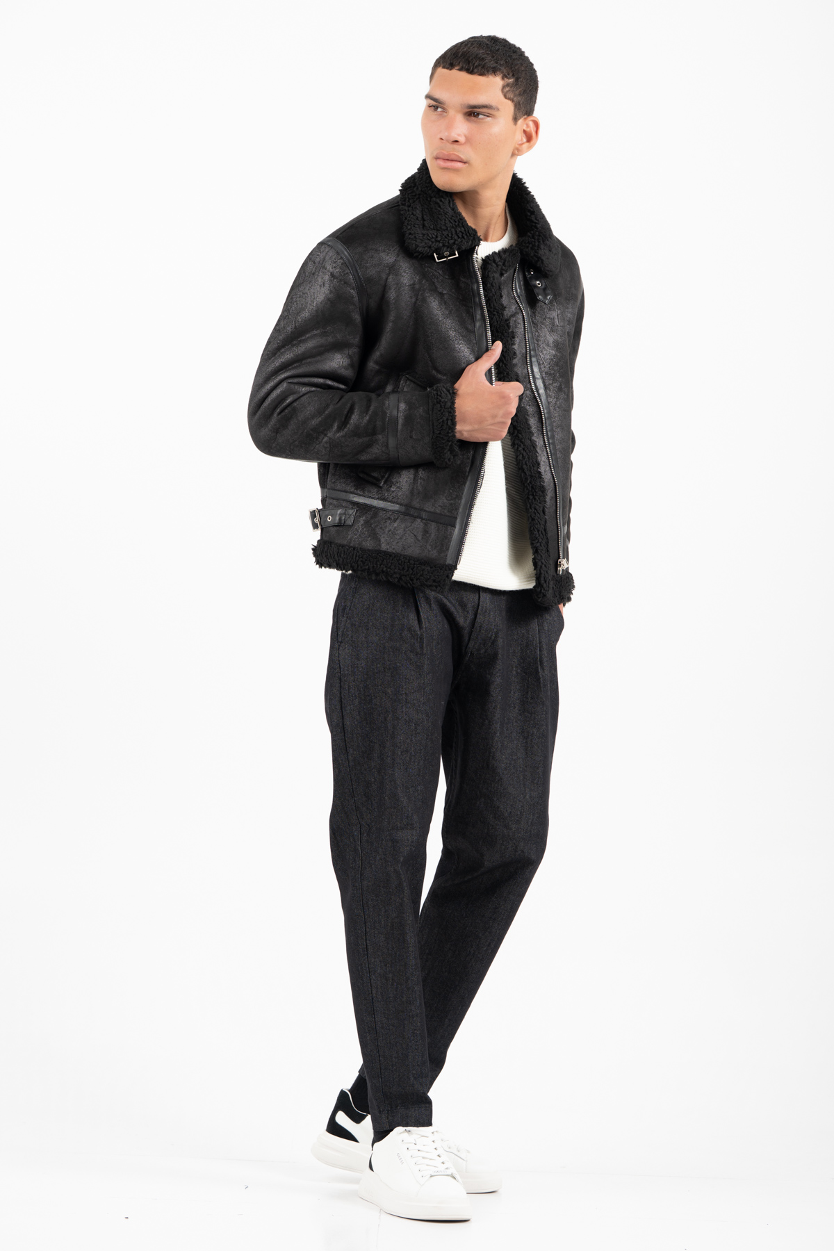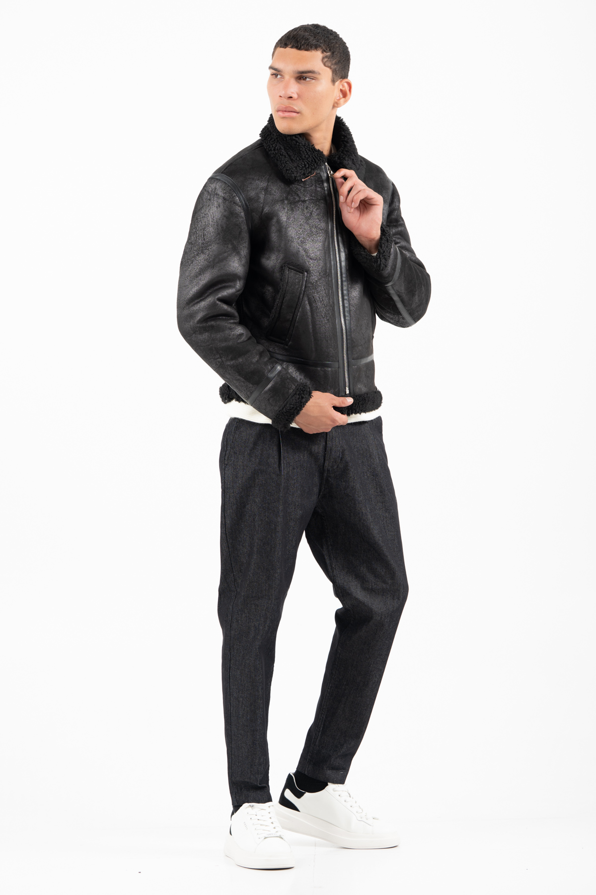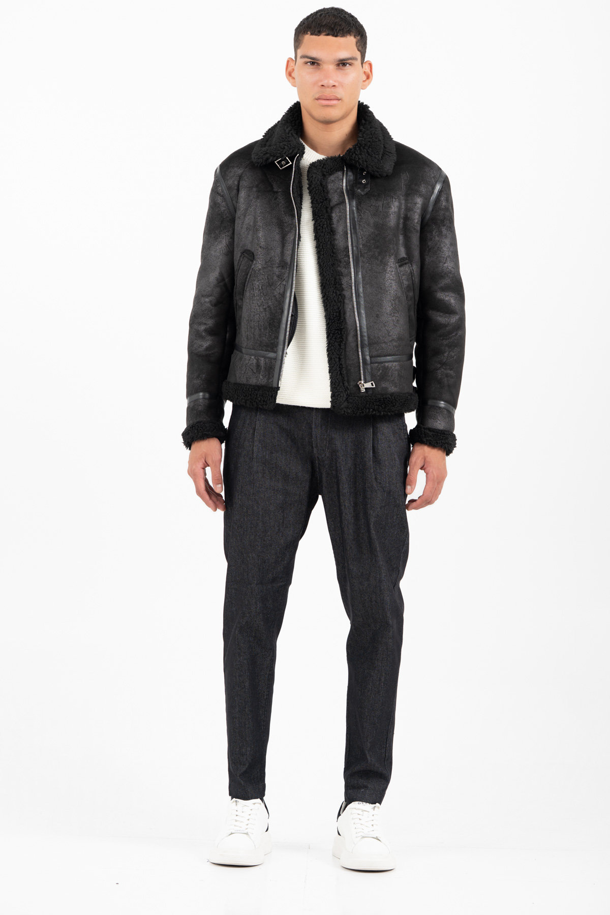 -Μπουφάν bomber μουτόν με επένδυση γούνας