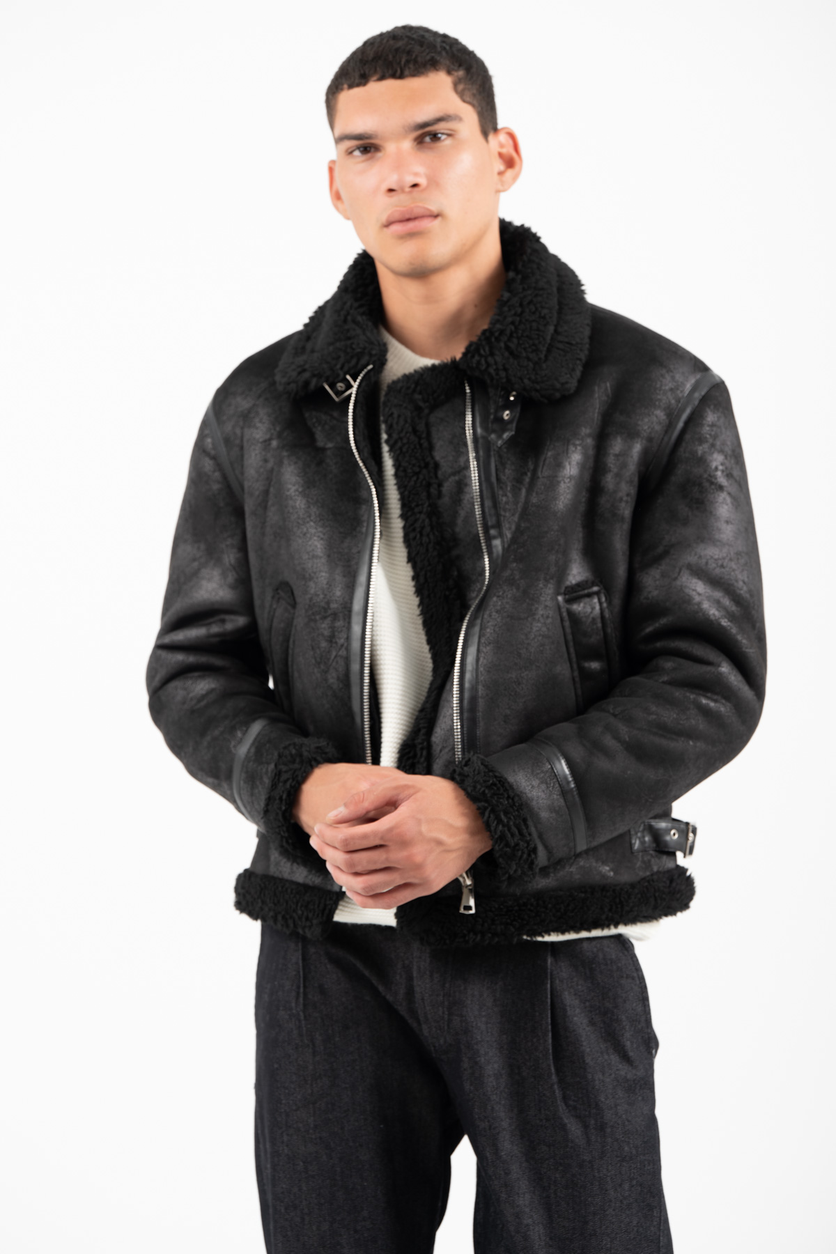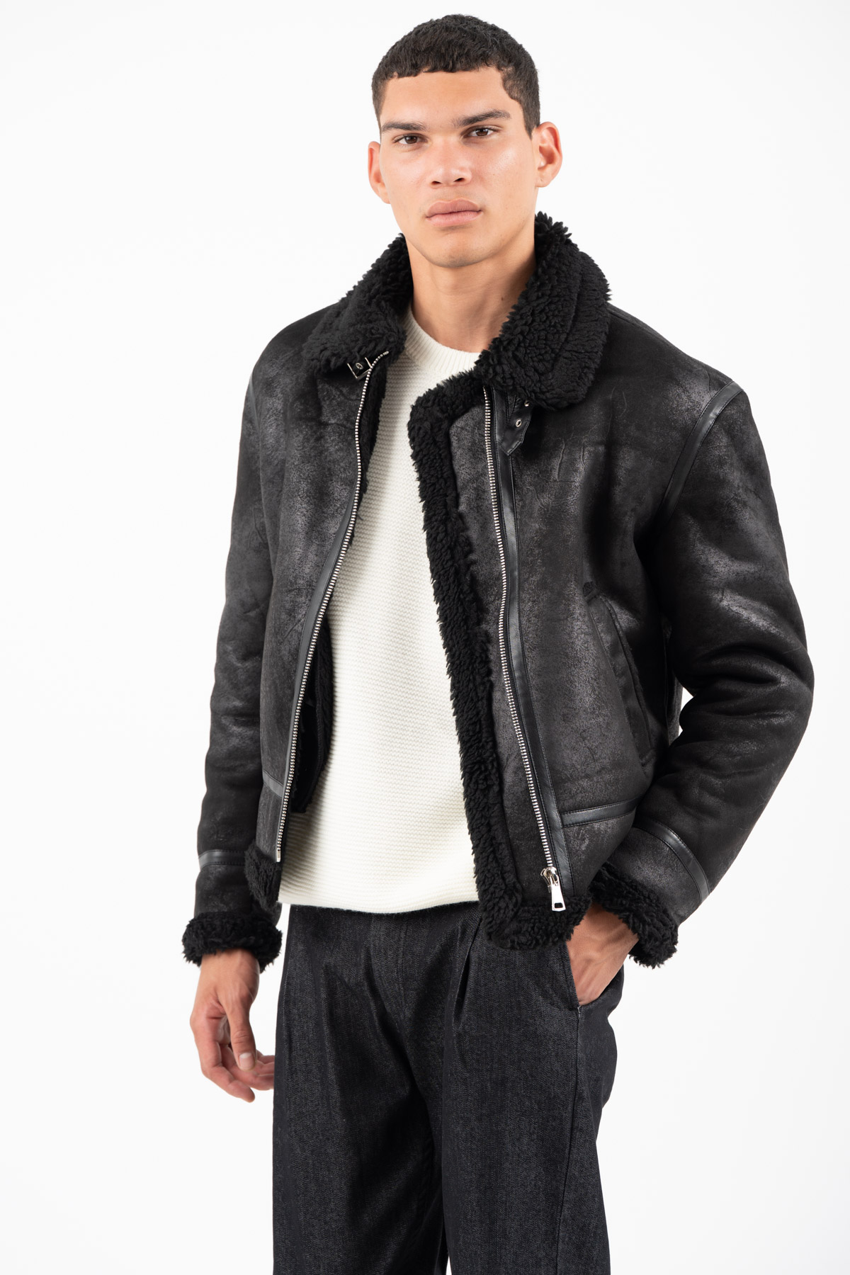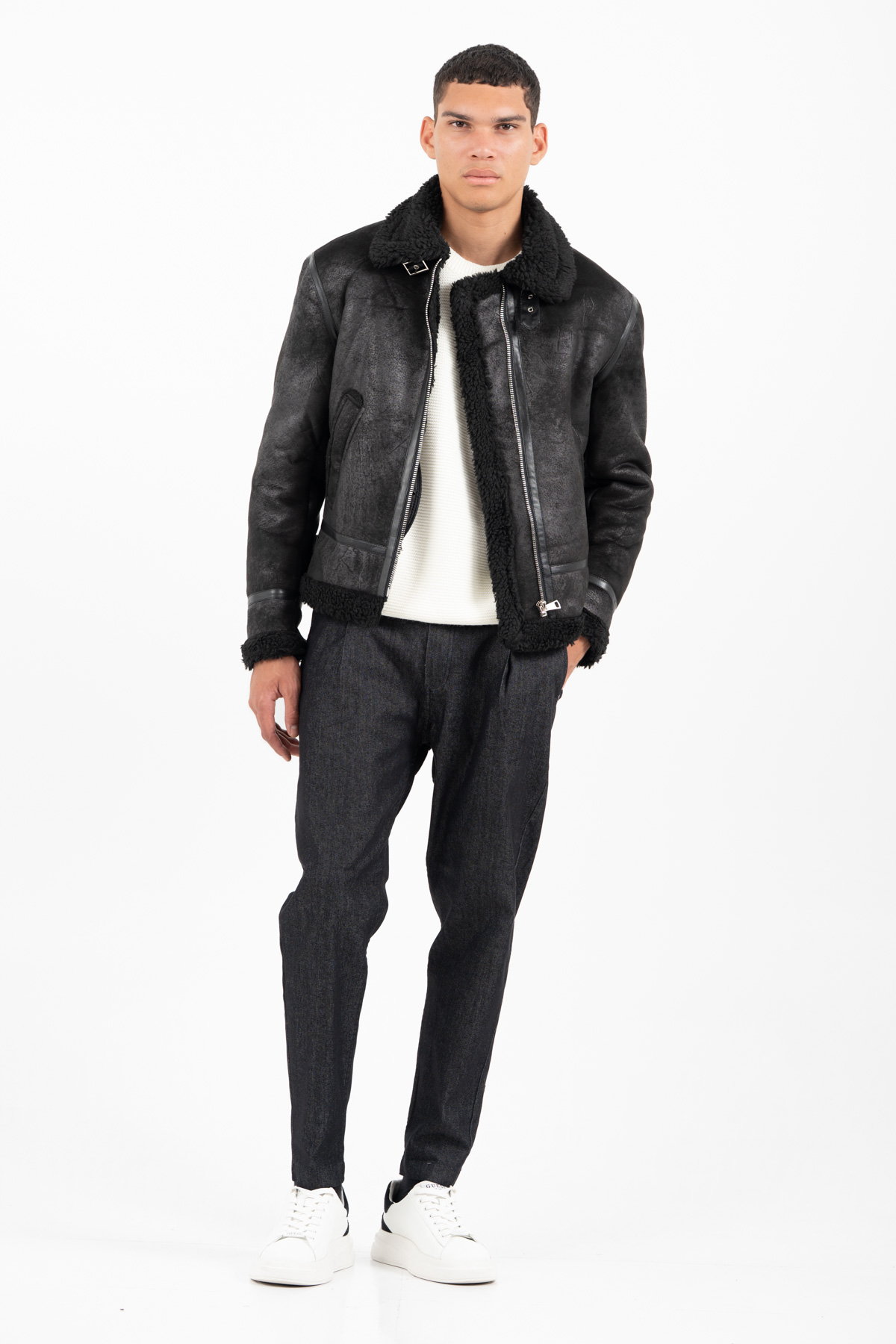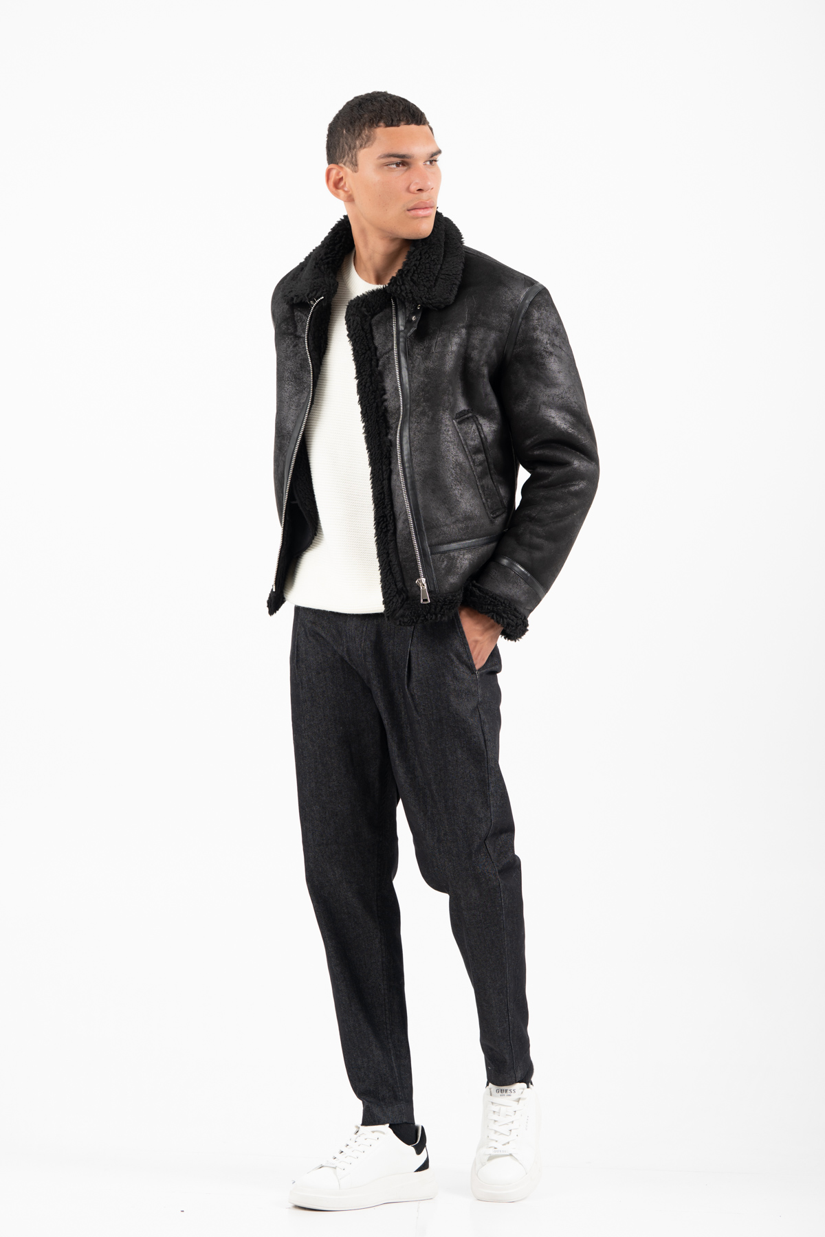 -Μπουφάν bomber μουτόν με επένδυση γούνας