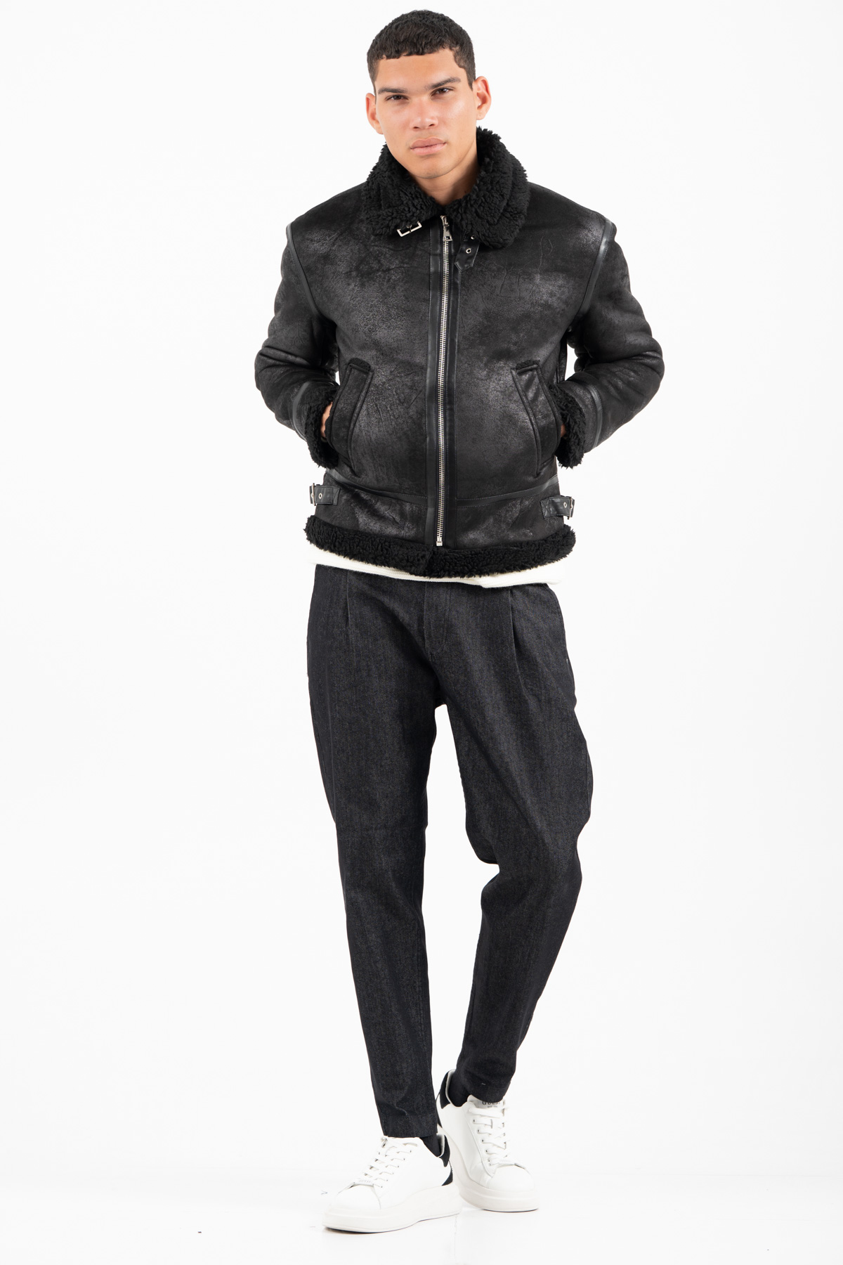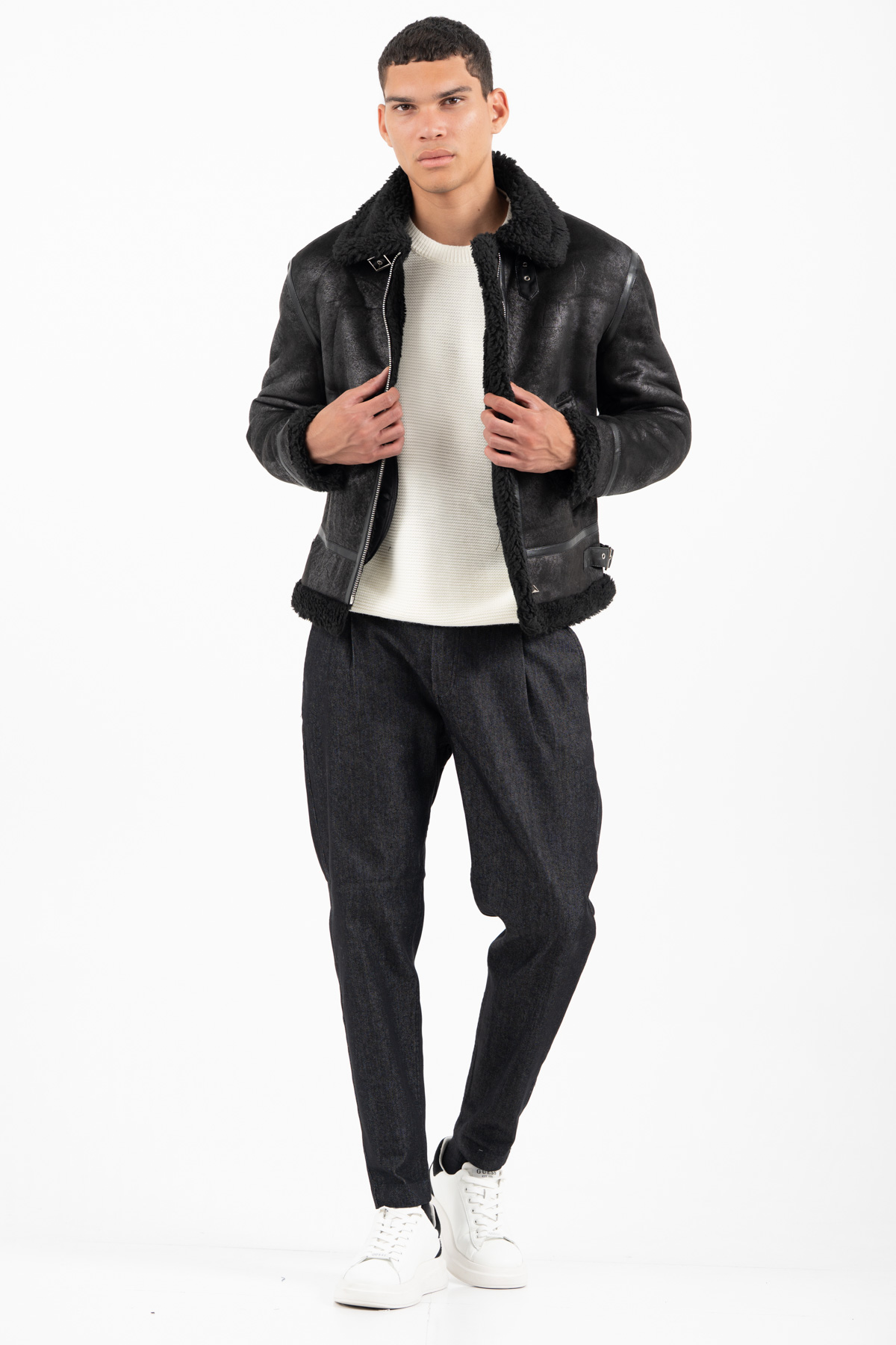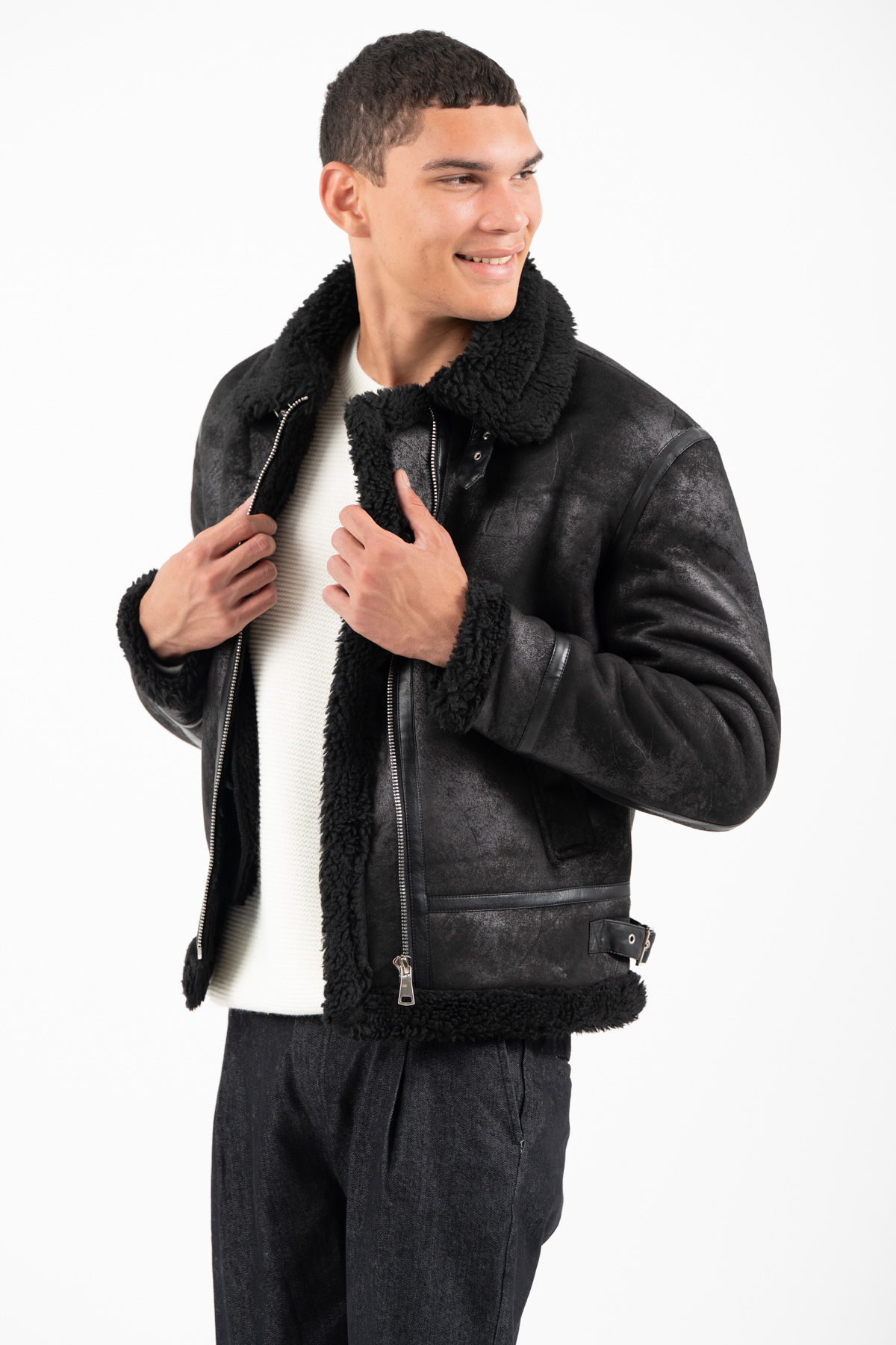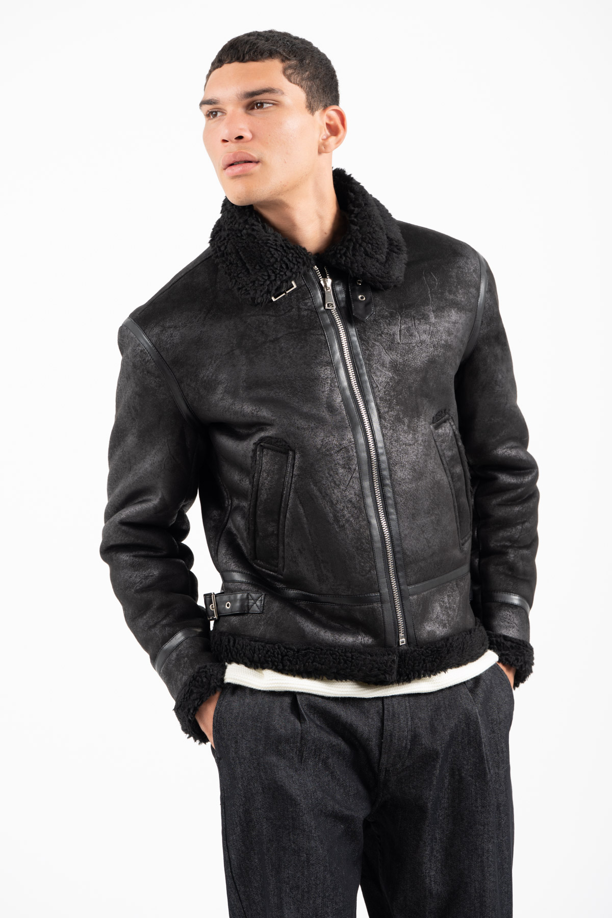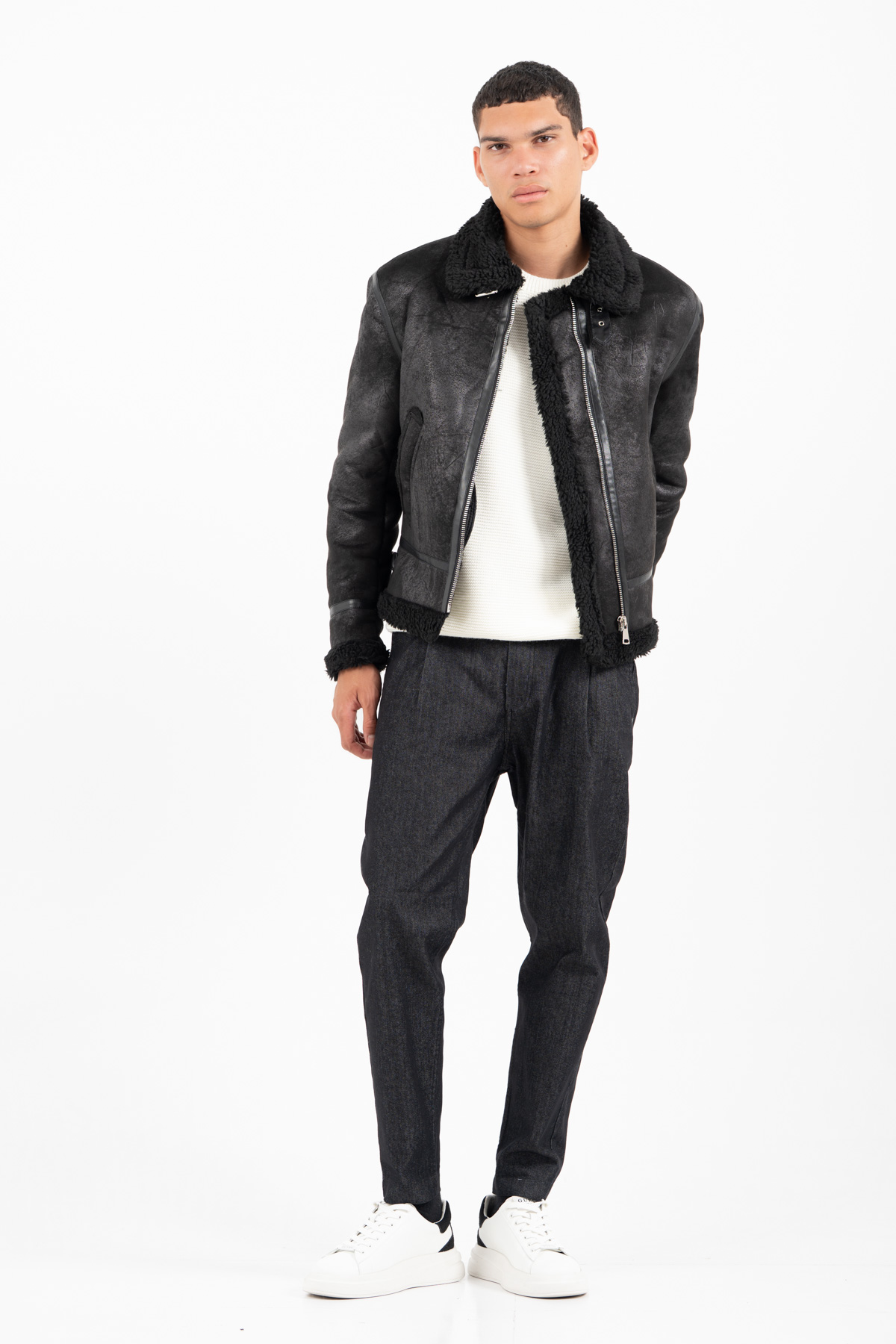 -Μπουφάν bomber μουτόν με επένδυση γούνας
