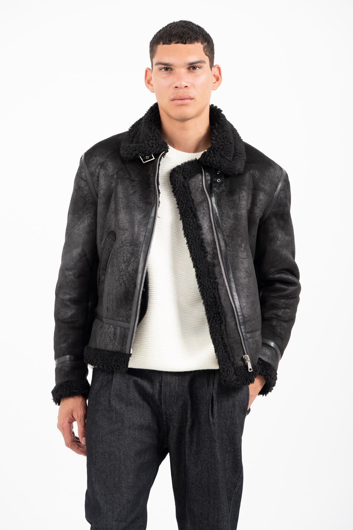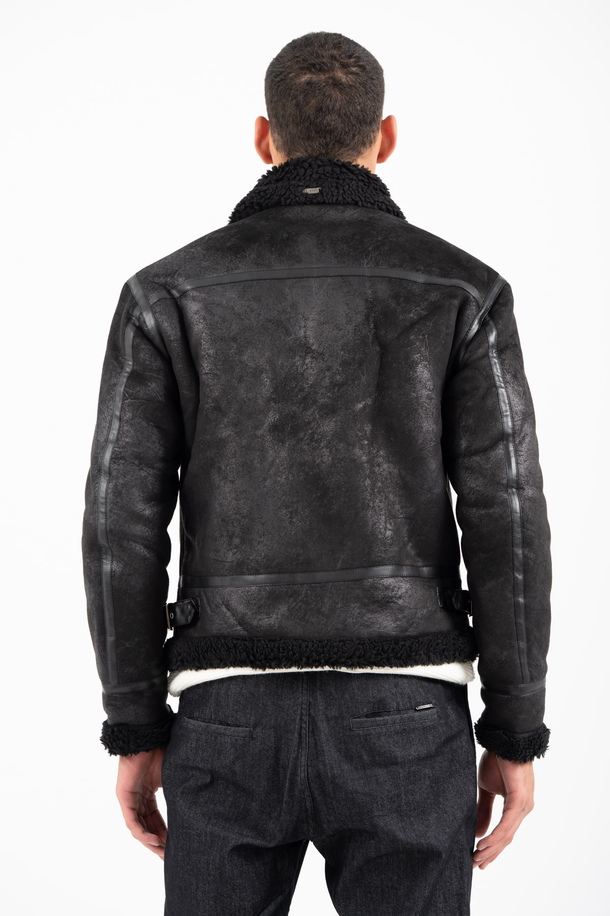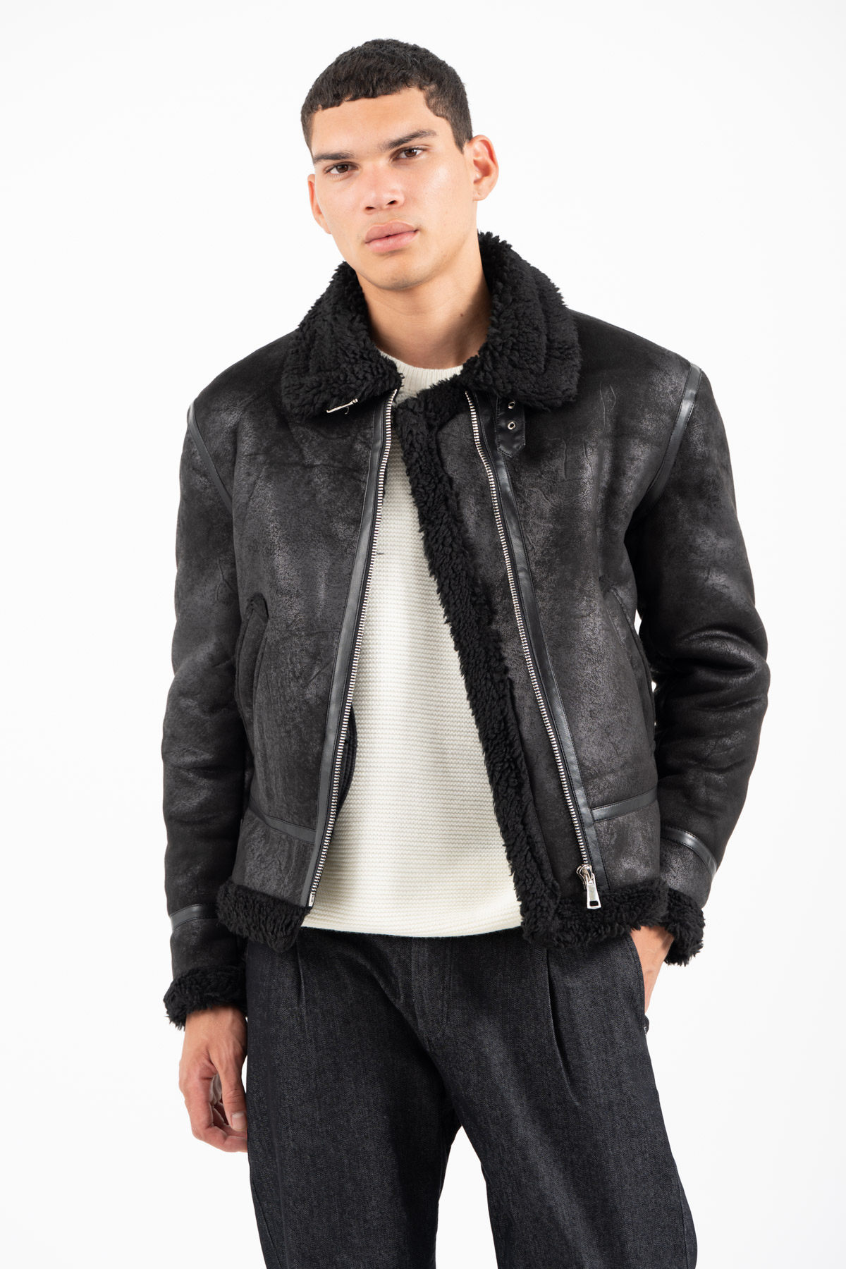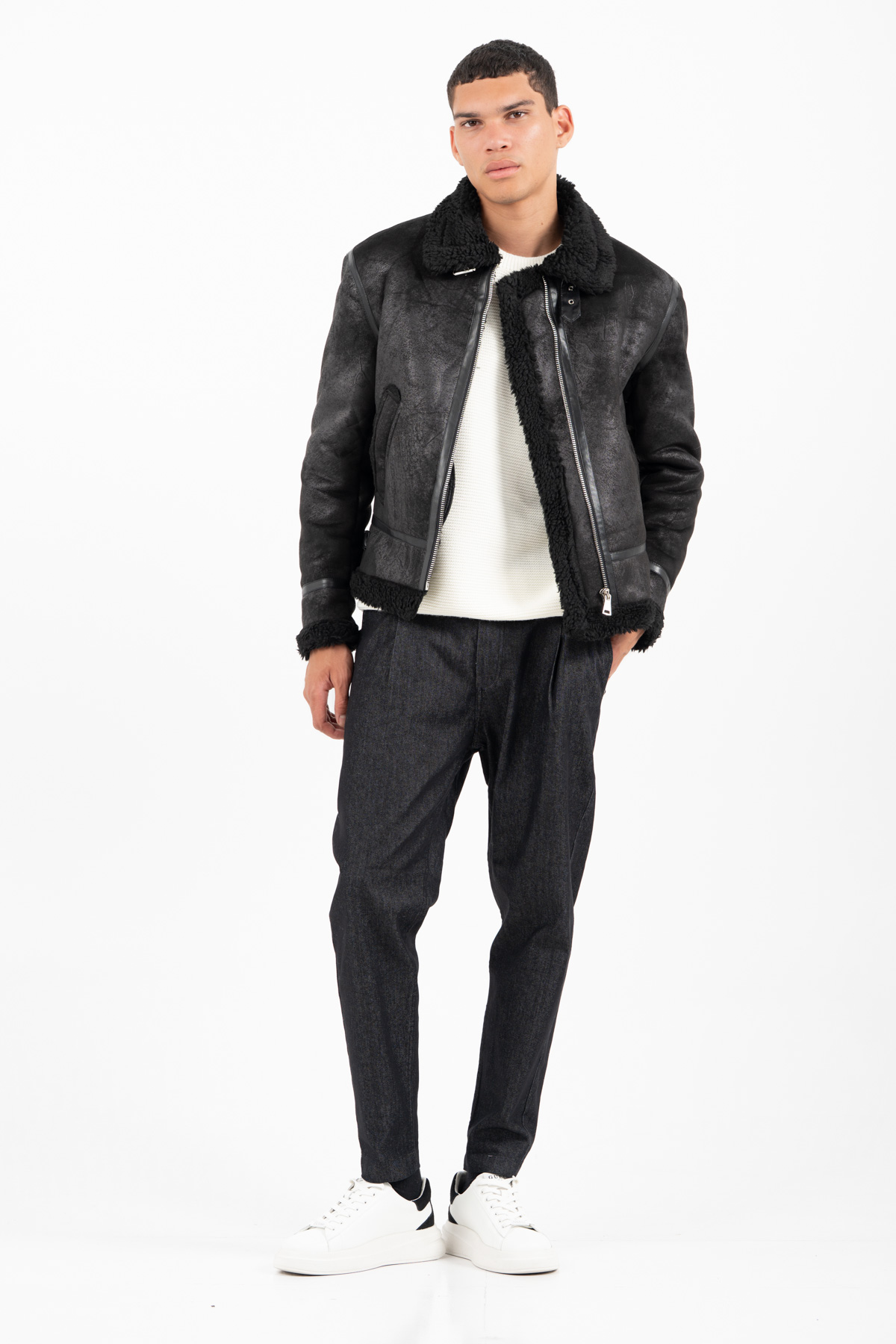 -Μπουφάν bomber μουτόν με επένδυση γούνας