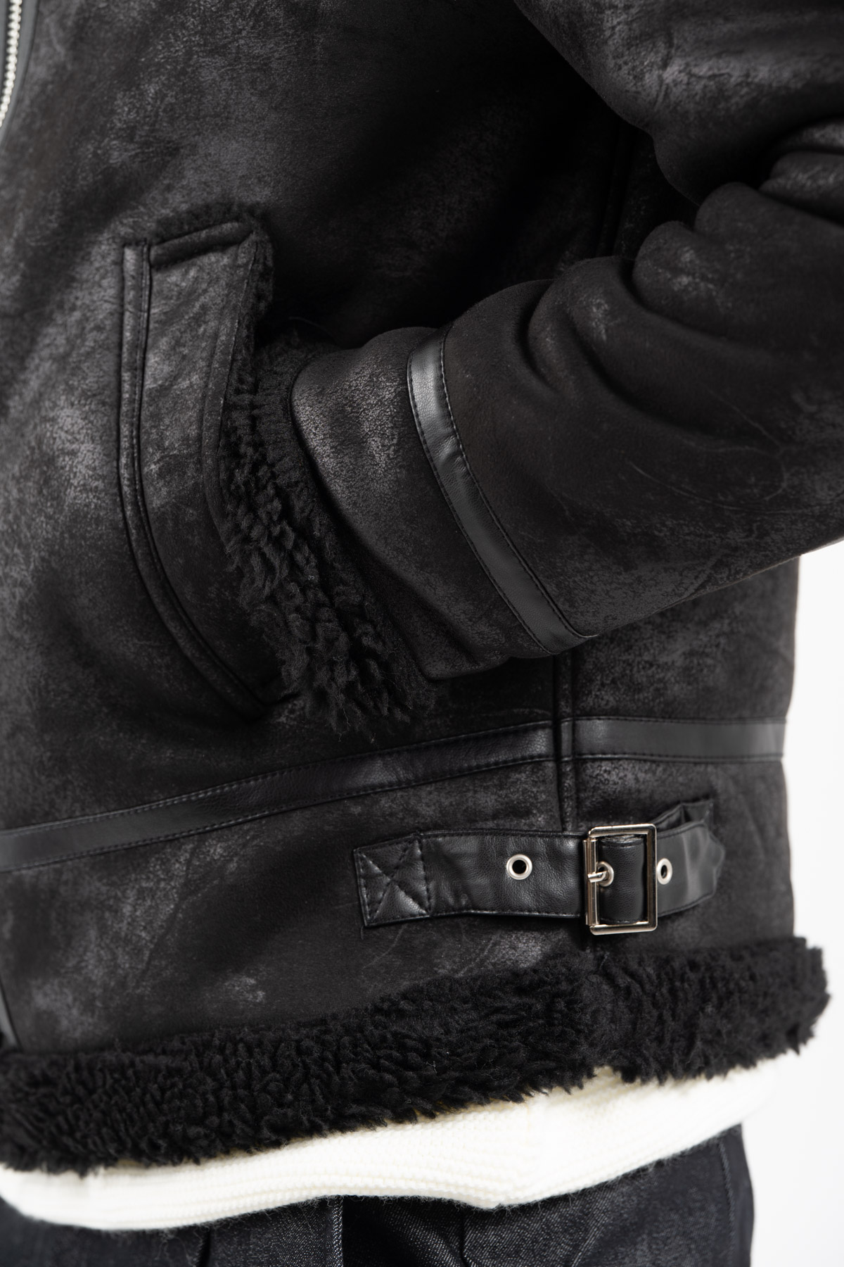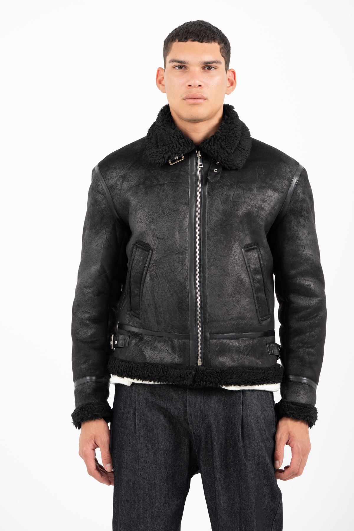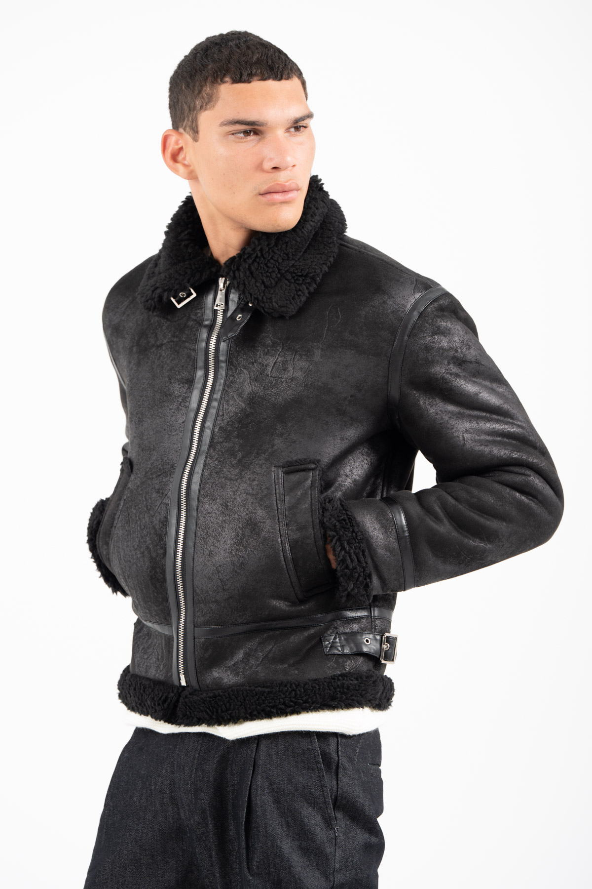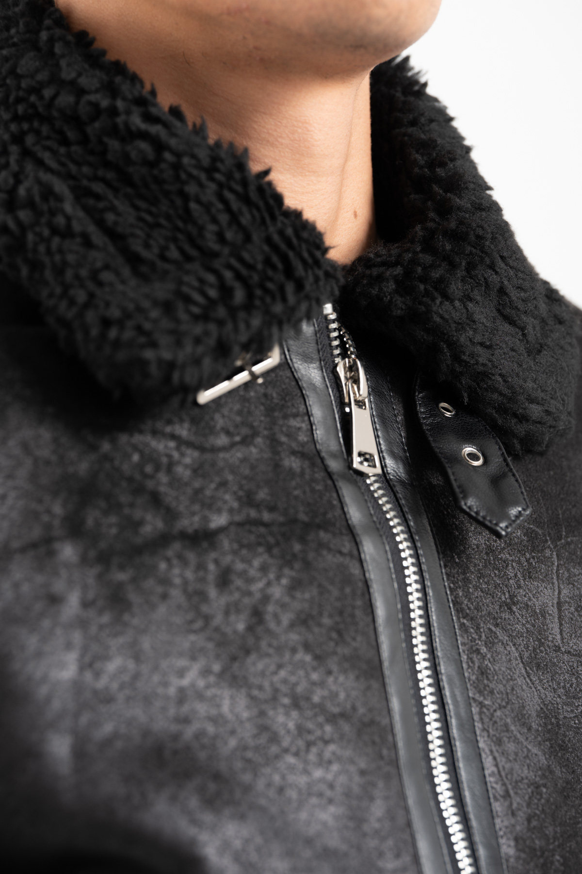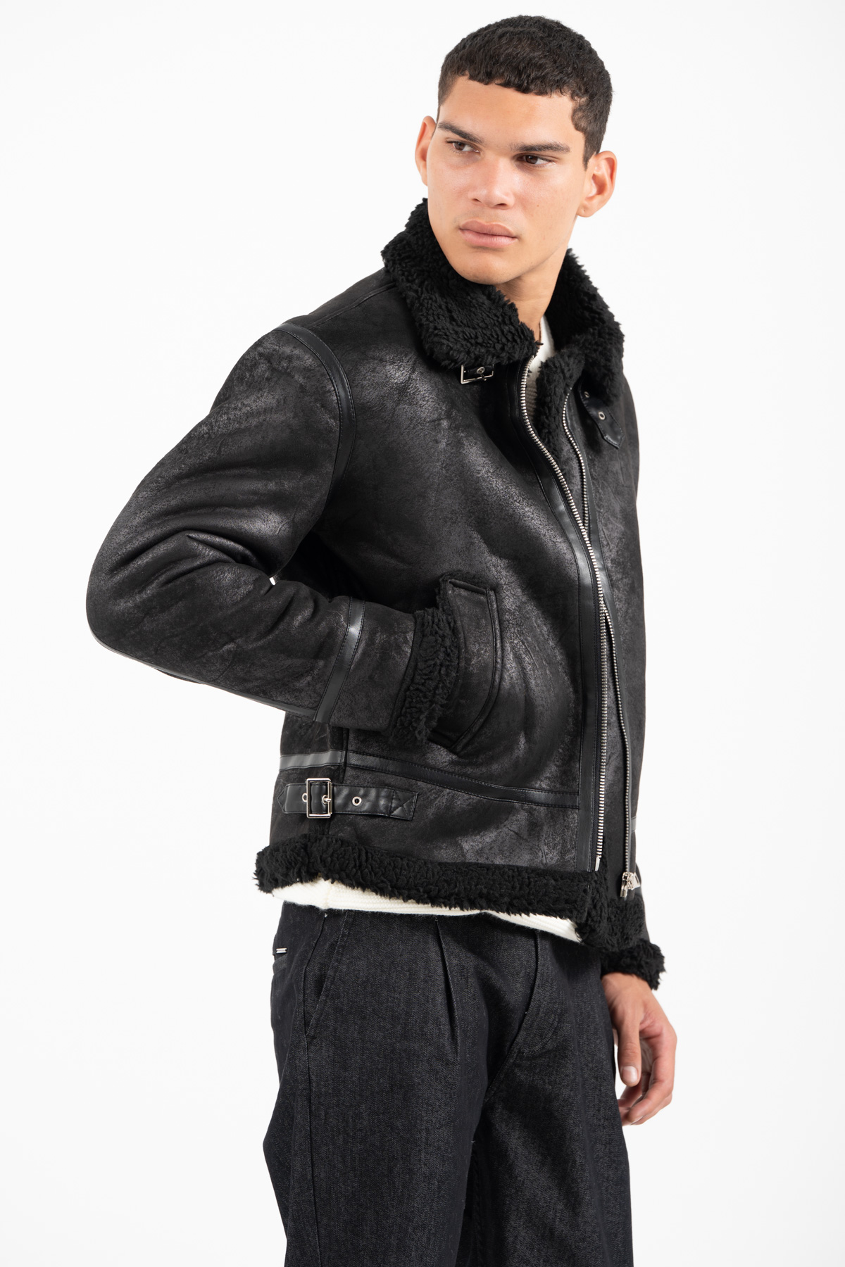 -Μπουφάν bomber μουτόν με επένδυση γούνας