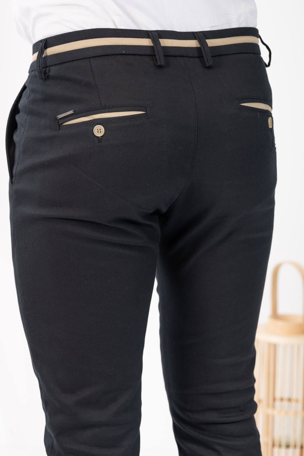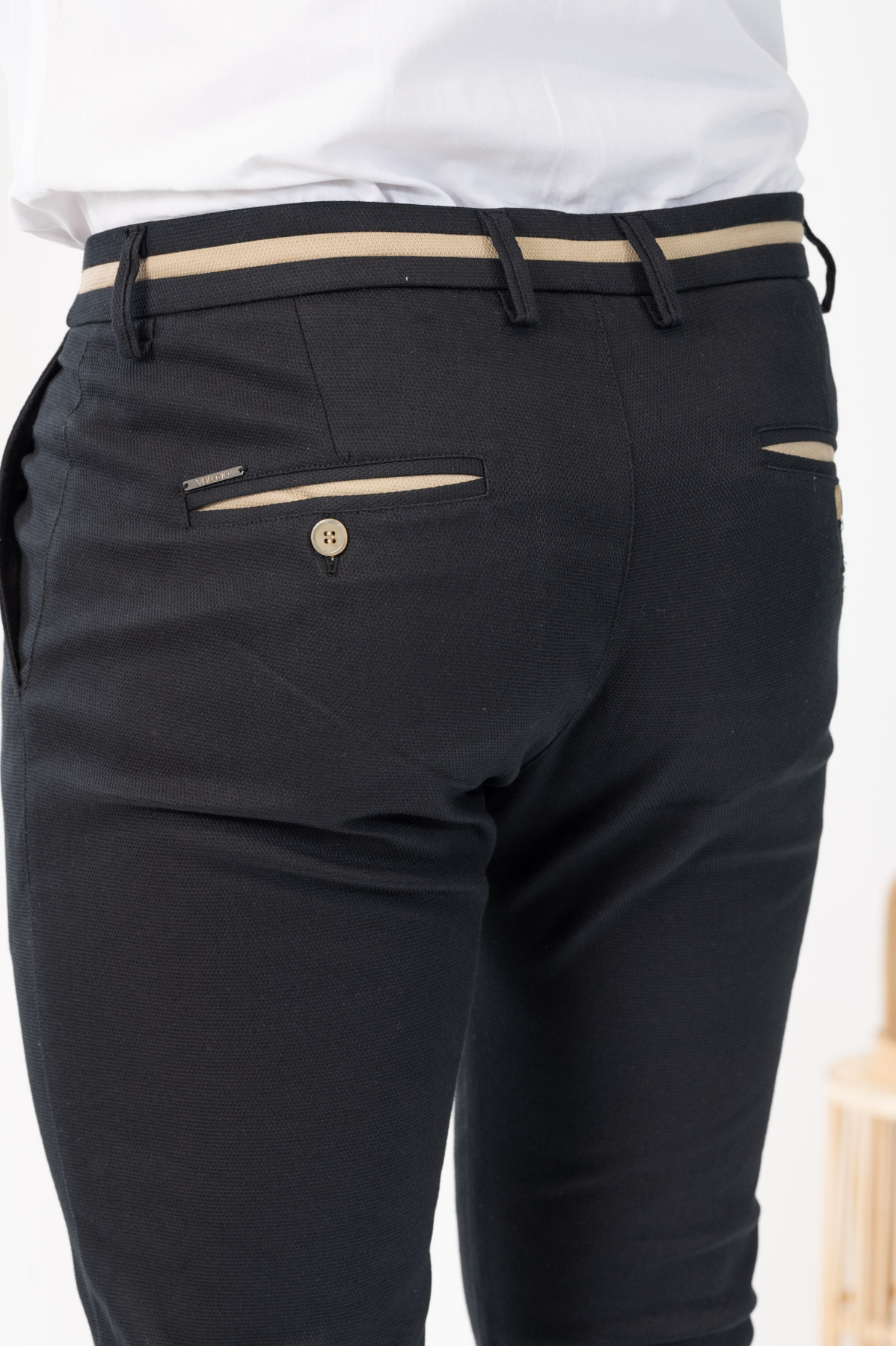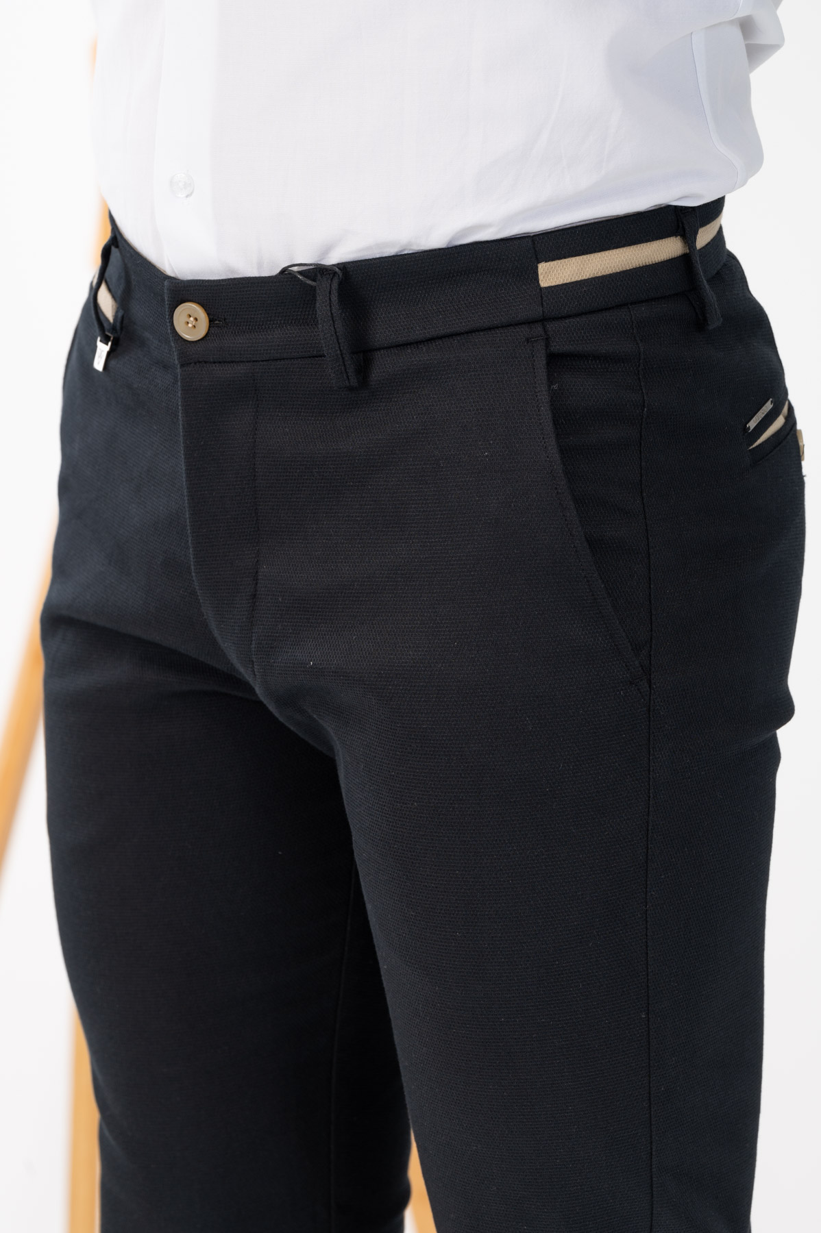 -Παντελόνι chino με δίχρωμες λεπτομέρειες σε ζωνάρι και μέση