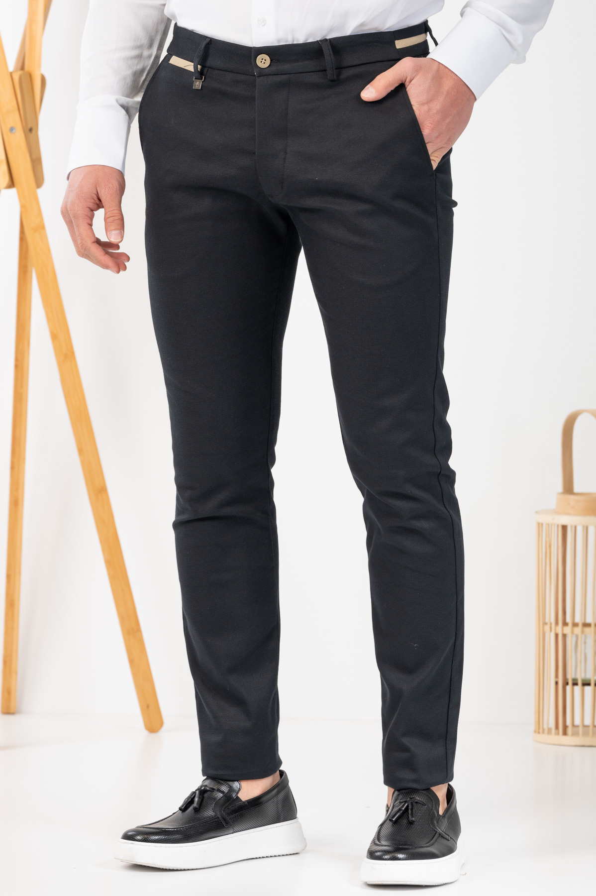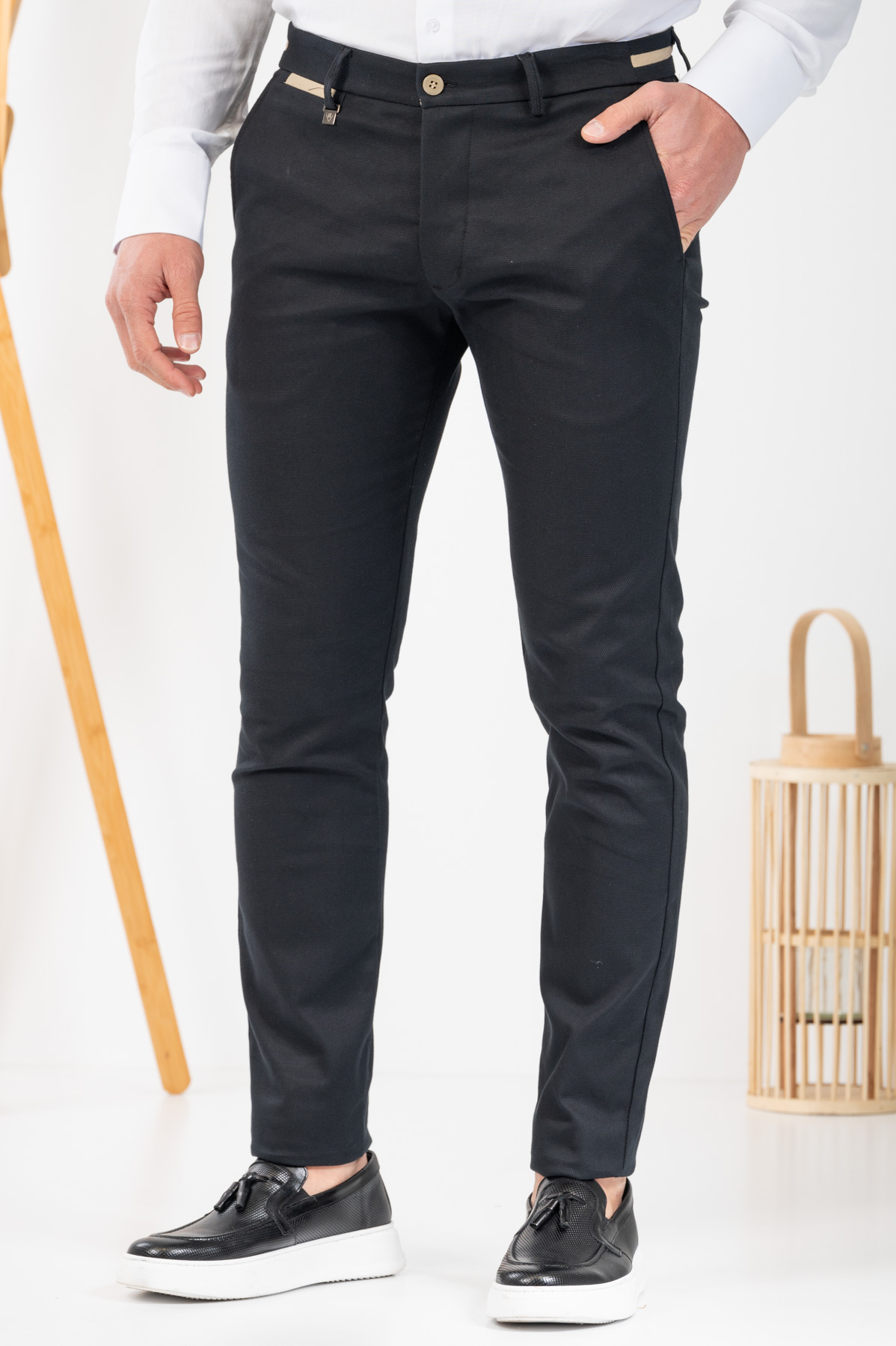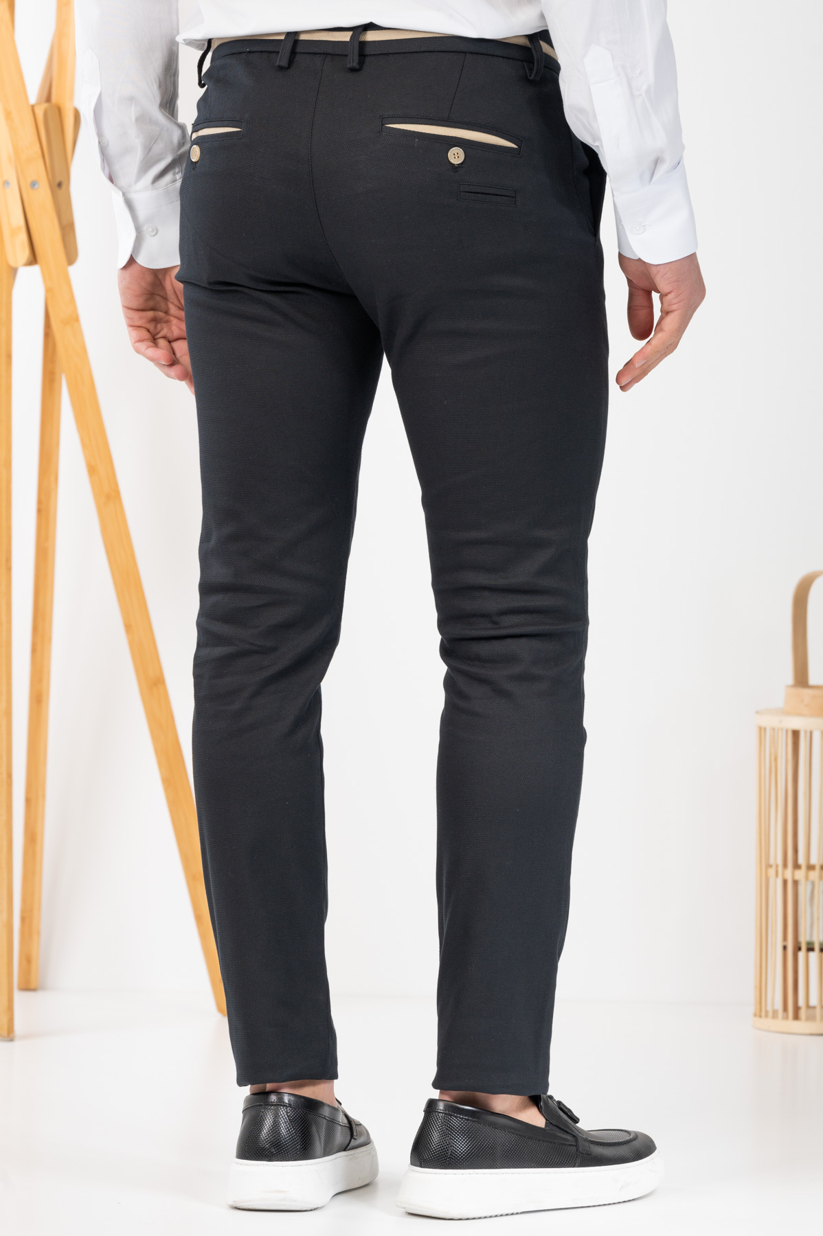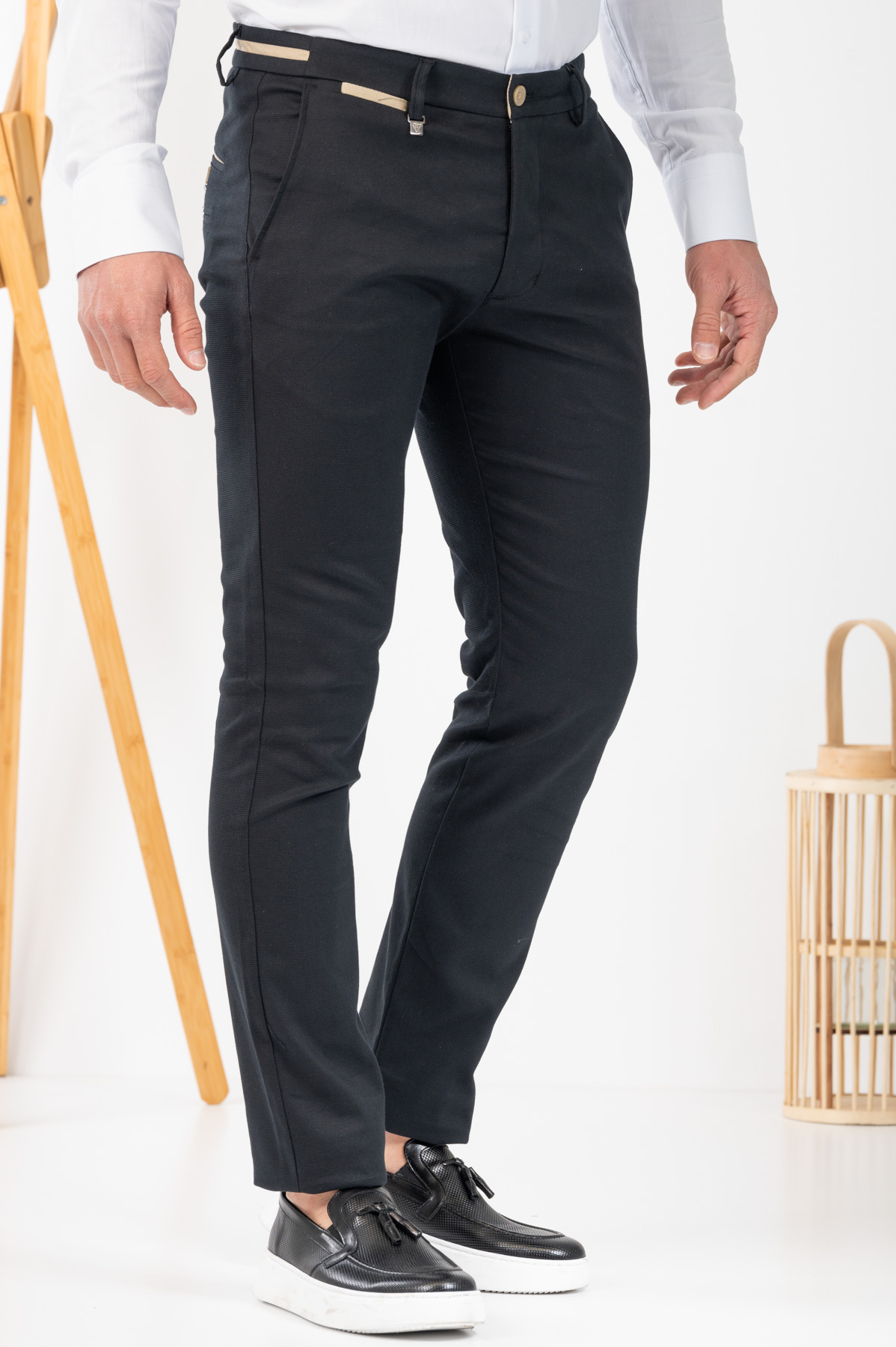 -Παντελόνι chino με δίχρωμες λεπτομέρειες σε ζωνάρι και μέση