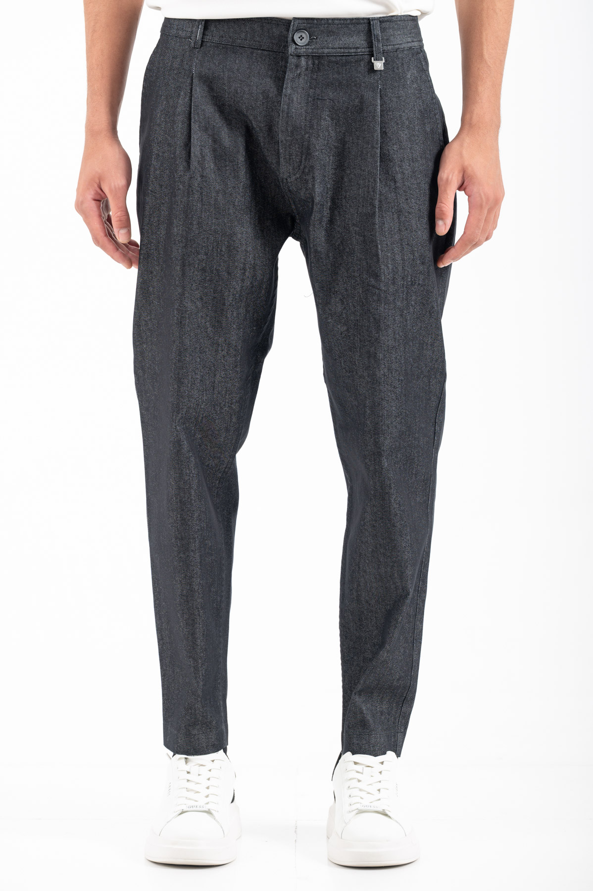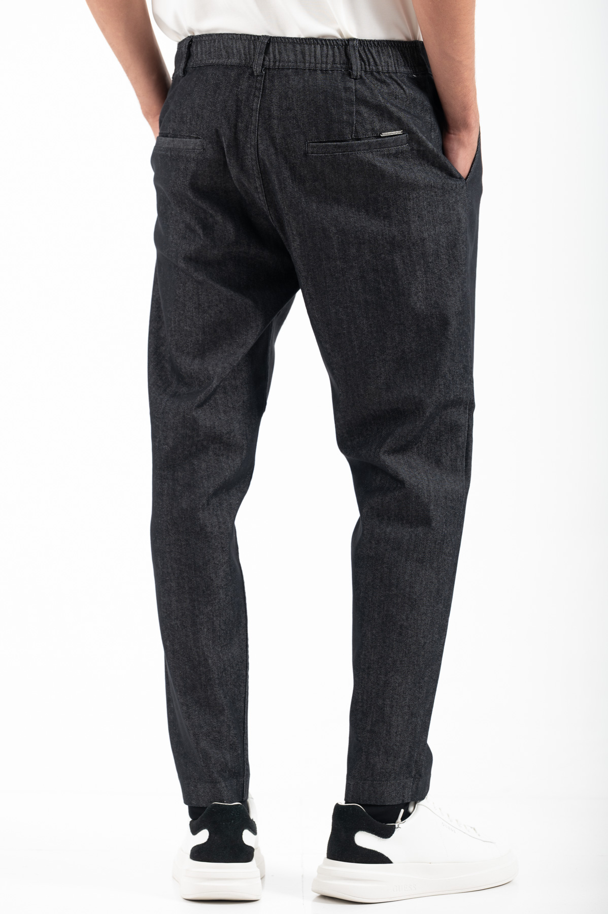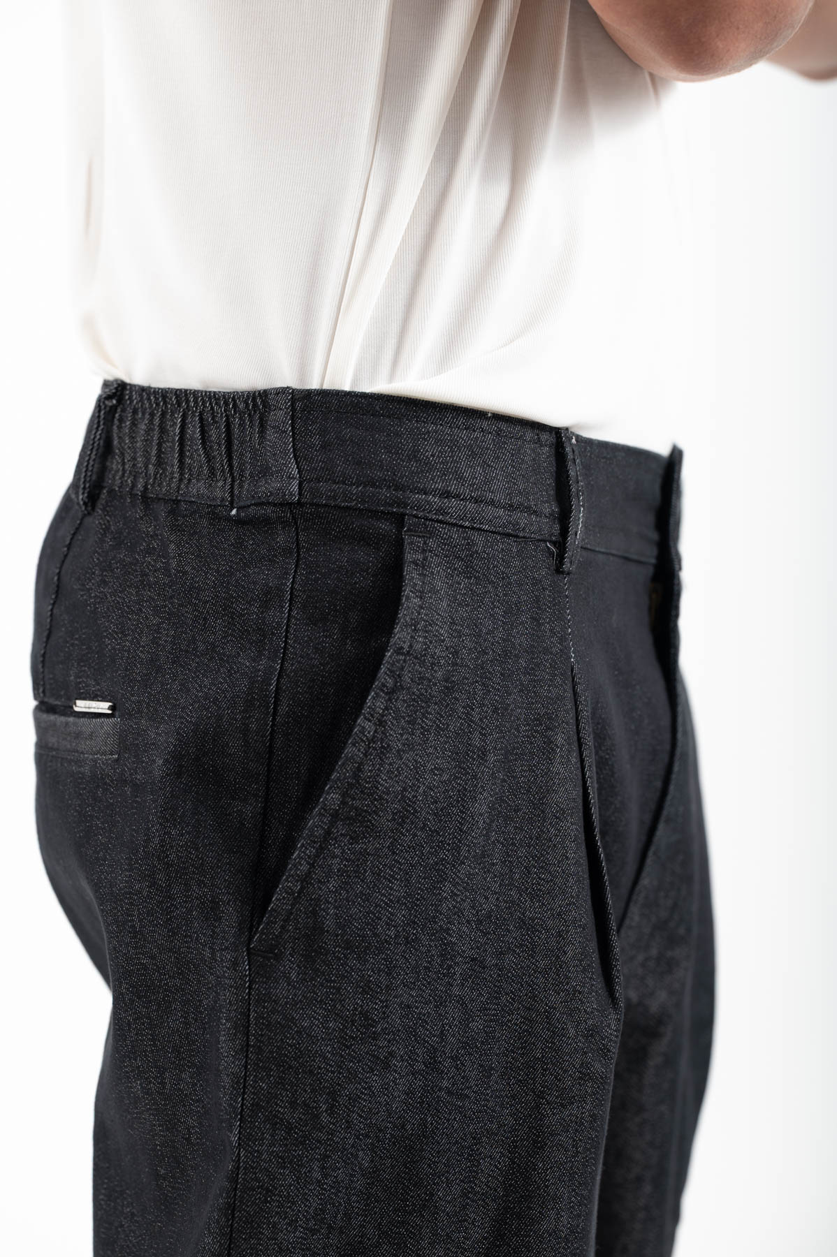 -Παντελόνι τζιν μονόπιετο με λάστιχο στη μέση σε loose fit γραμμή