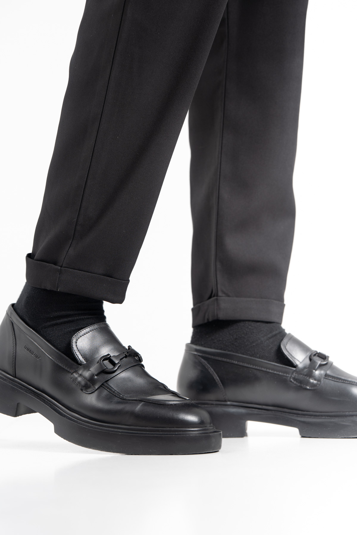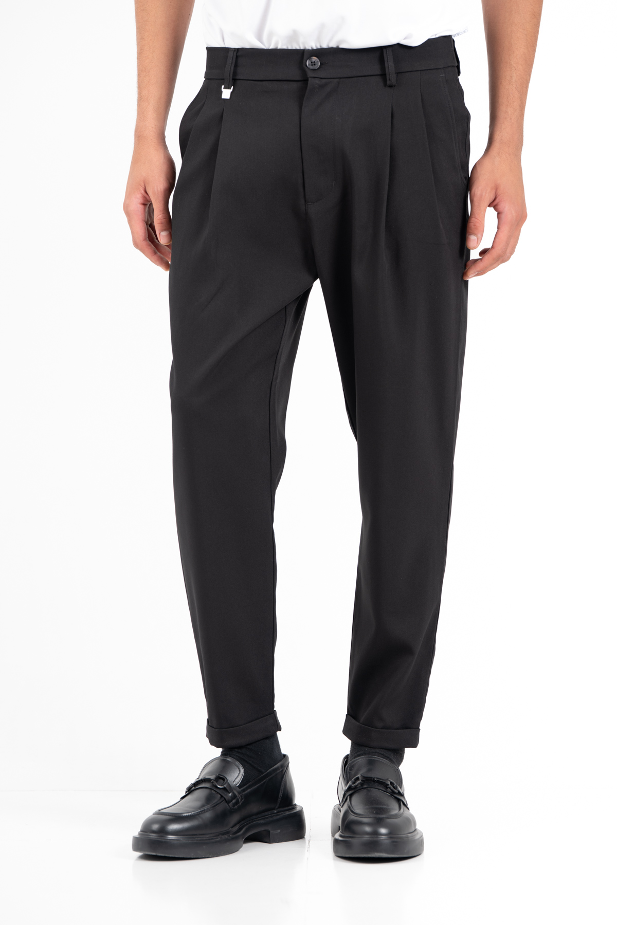 -Παντελόνι δίπιετο με λάστιχο στη μέση και ρεβέρ