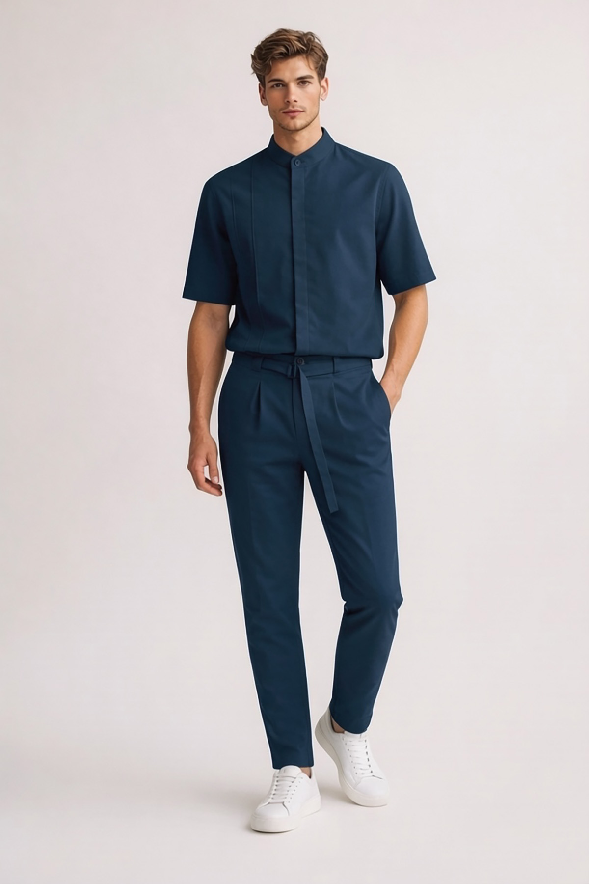 -Παντελόνι μονόπιετο με ζώνη από το ίδιο ύφασμα