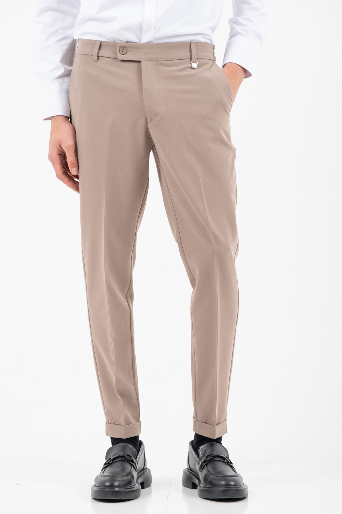-Παντελόνι σε slim γραμμή. Κλείσιμο με κουμπί και λάστιχο στη μέση για καλύτερη εφαρμογή