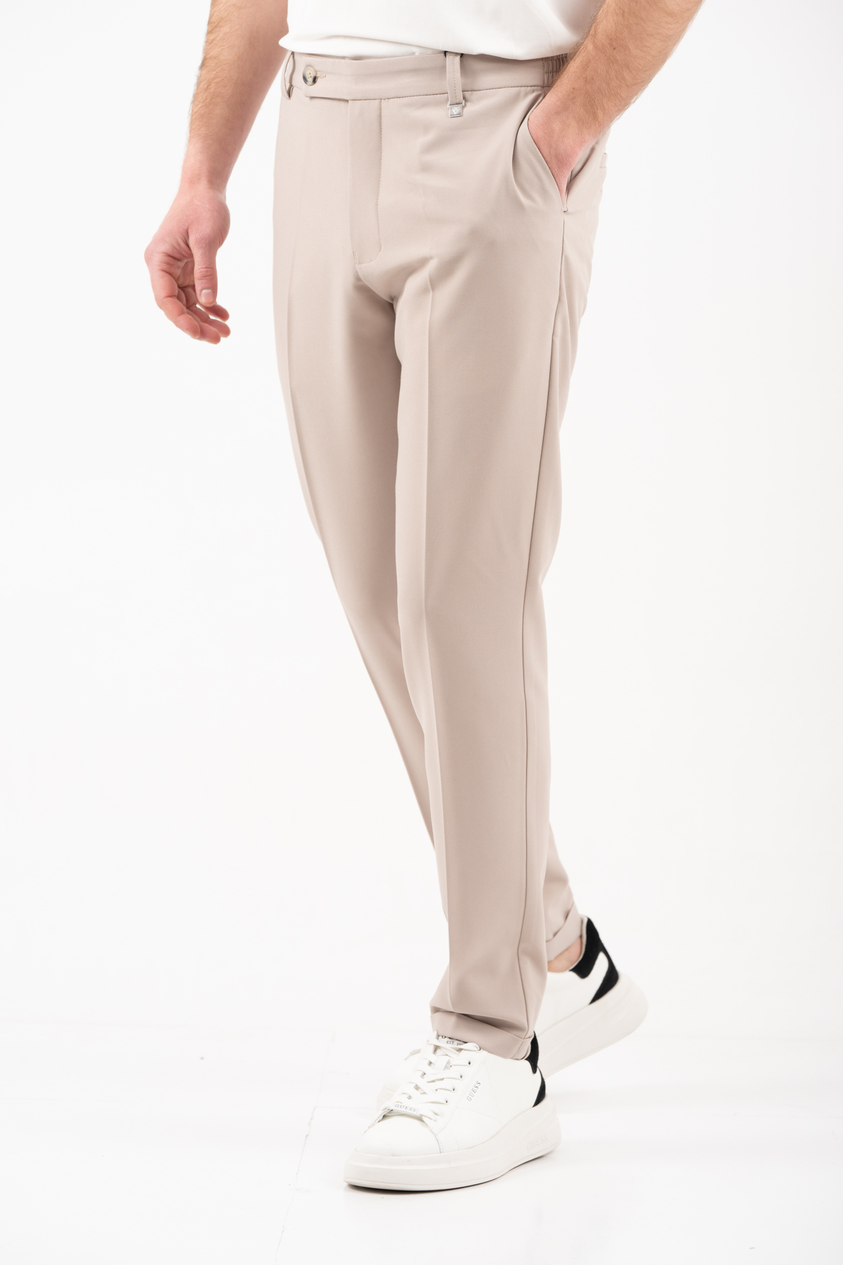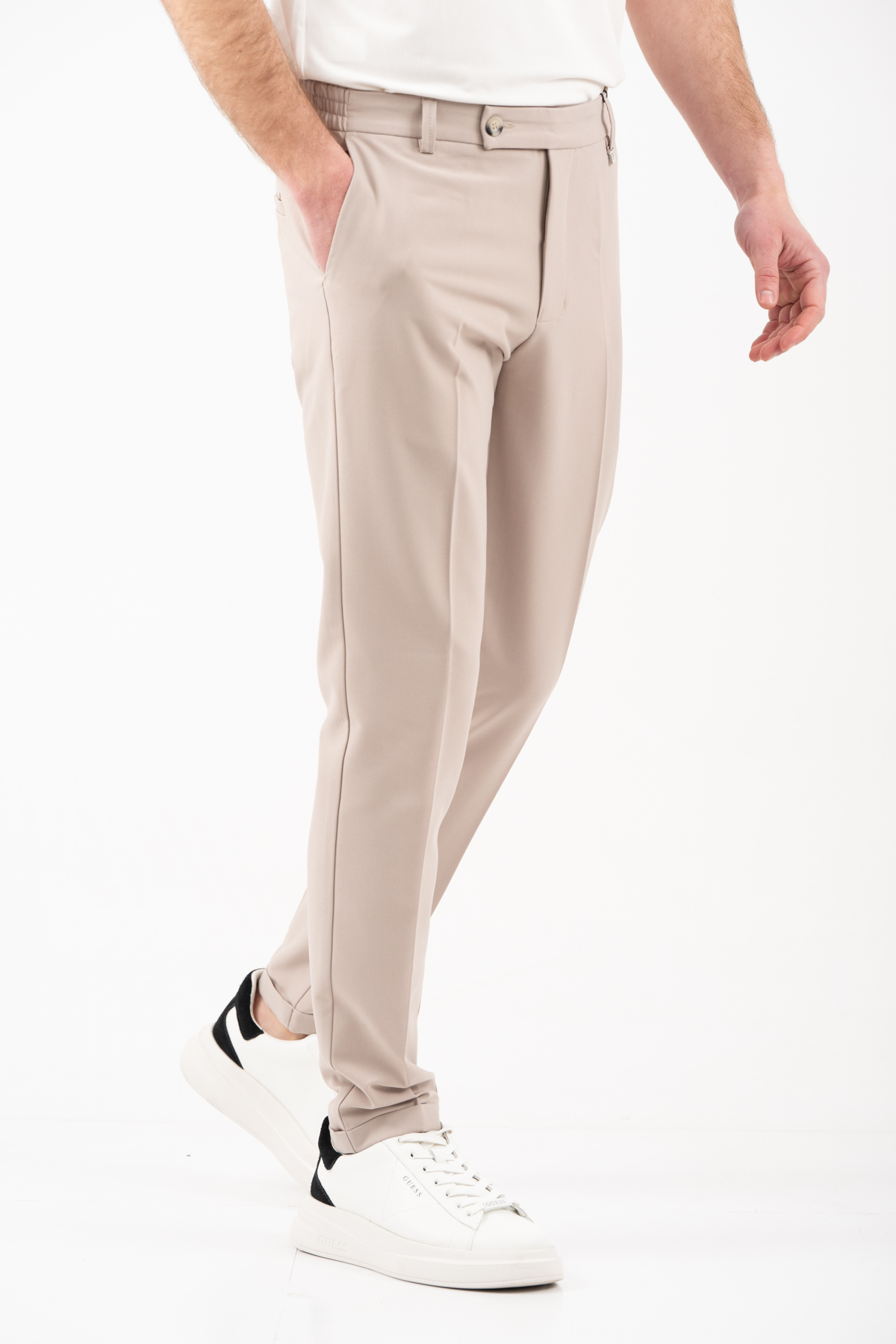 -Παντελόνι με λάστιχο στην μέση και ρεβέρ κάτω