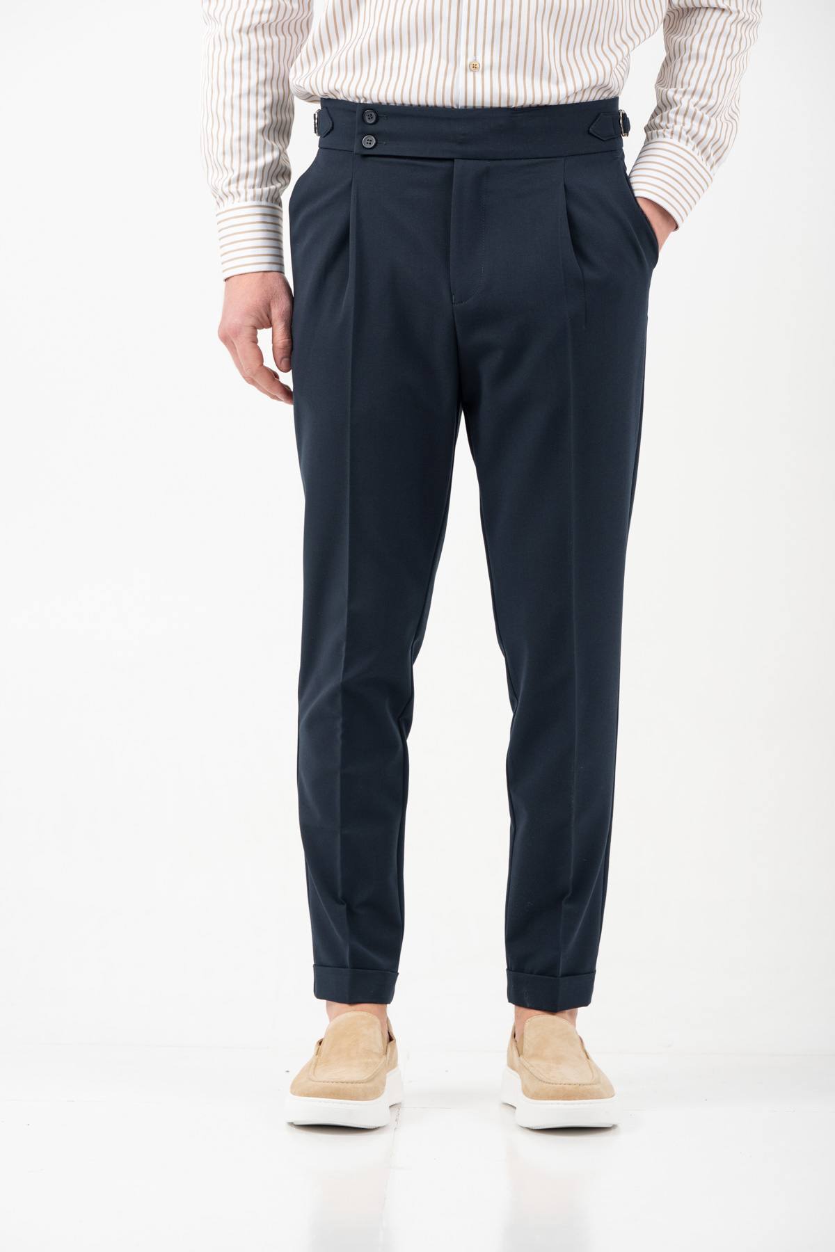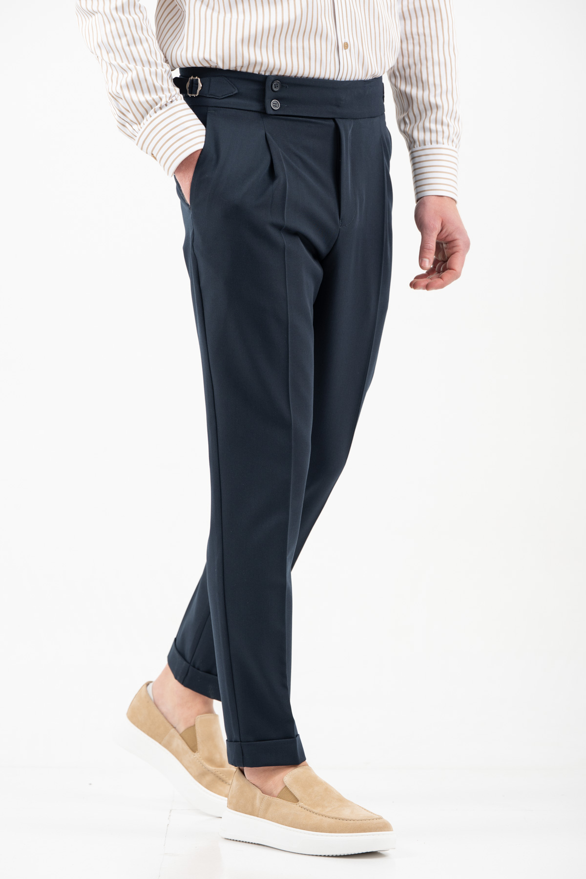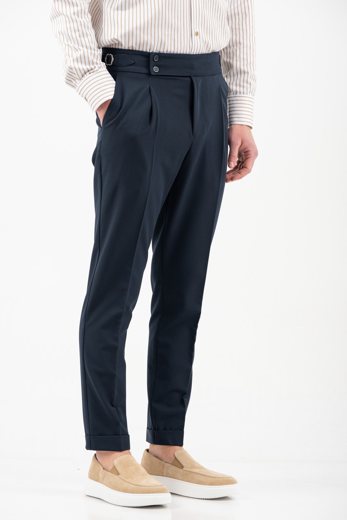 -Παντελόνι με πιέτα διπλό κουμπί και αγκράφα στο πλάι