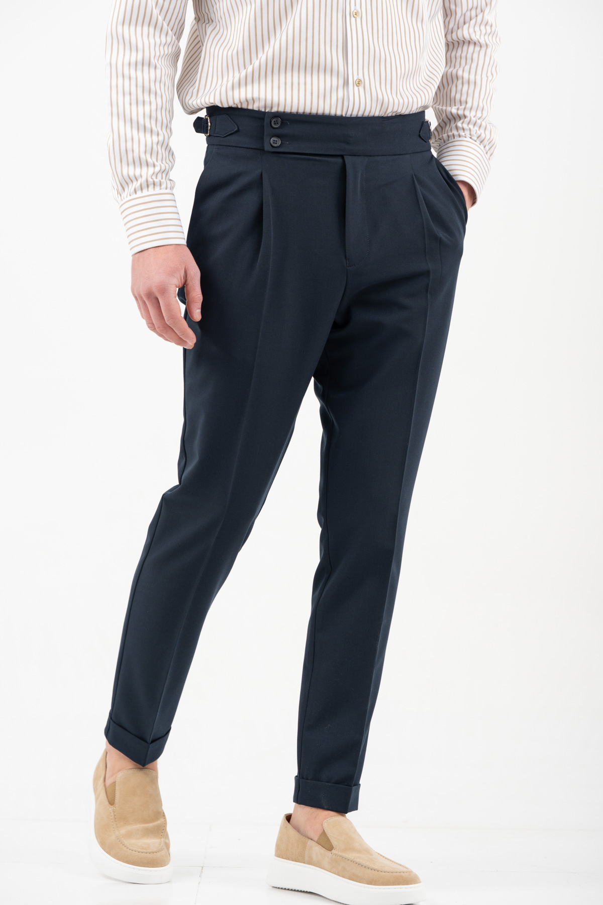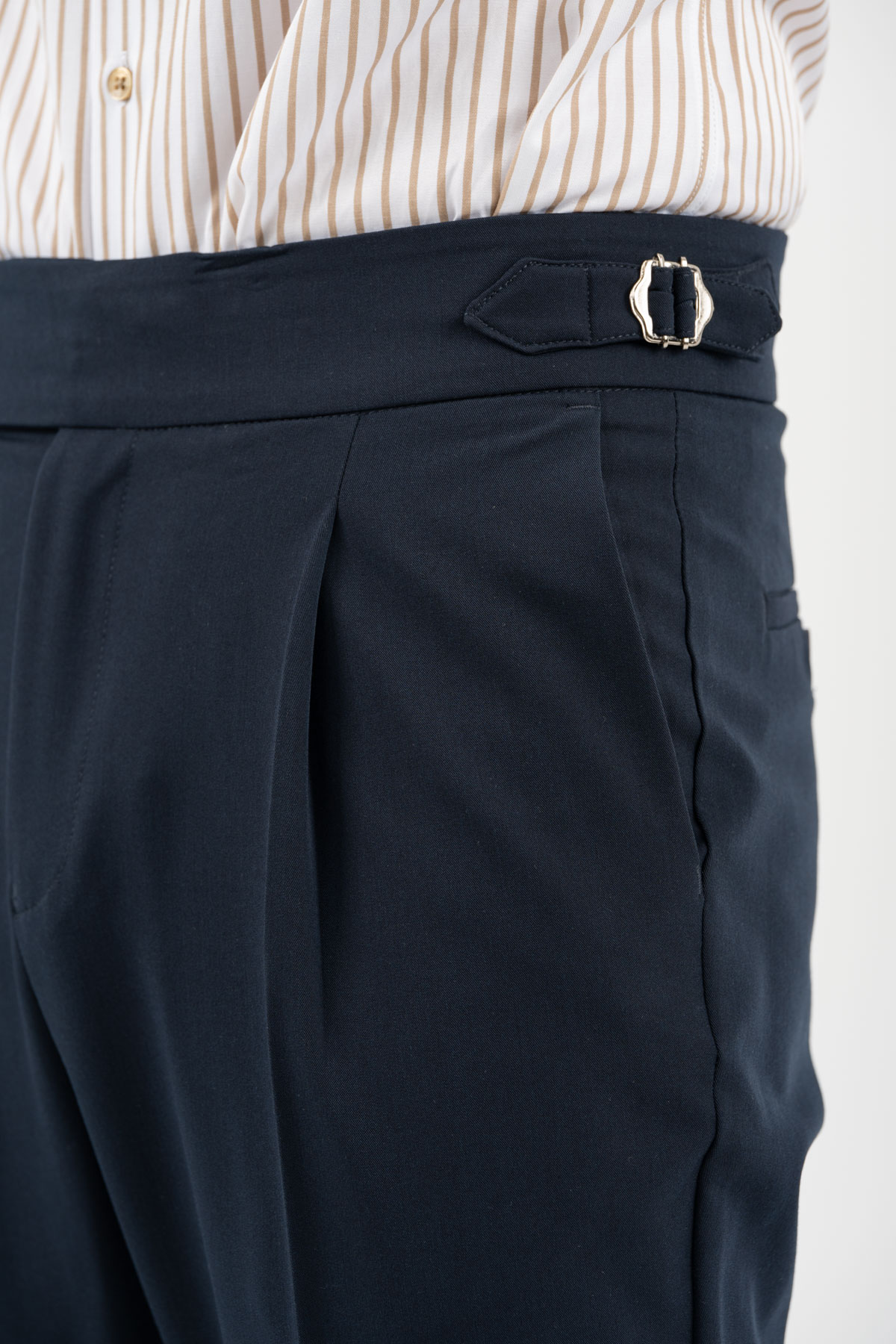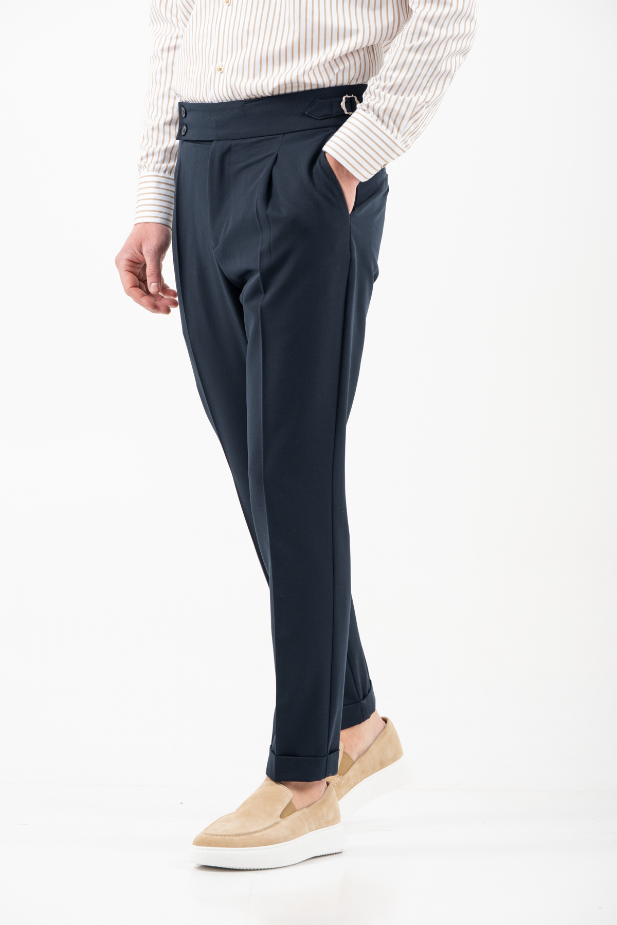 -Παντελόνι με πιέτα διπλό κουμπί και αγκράφα στο πλάι