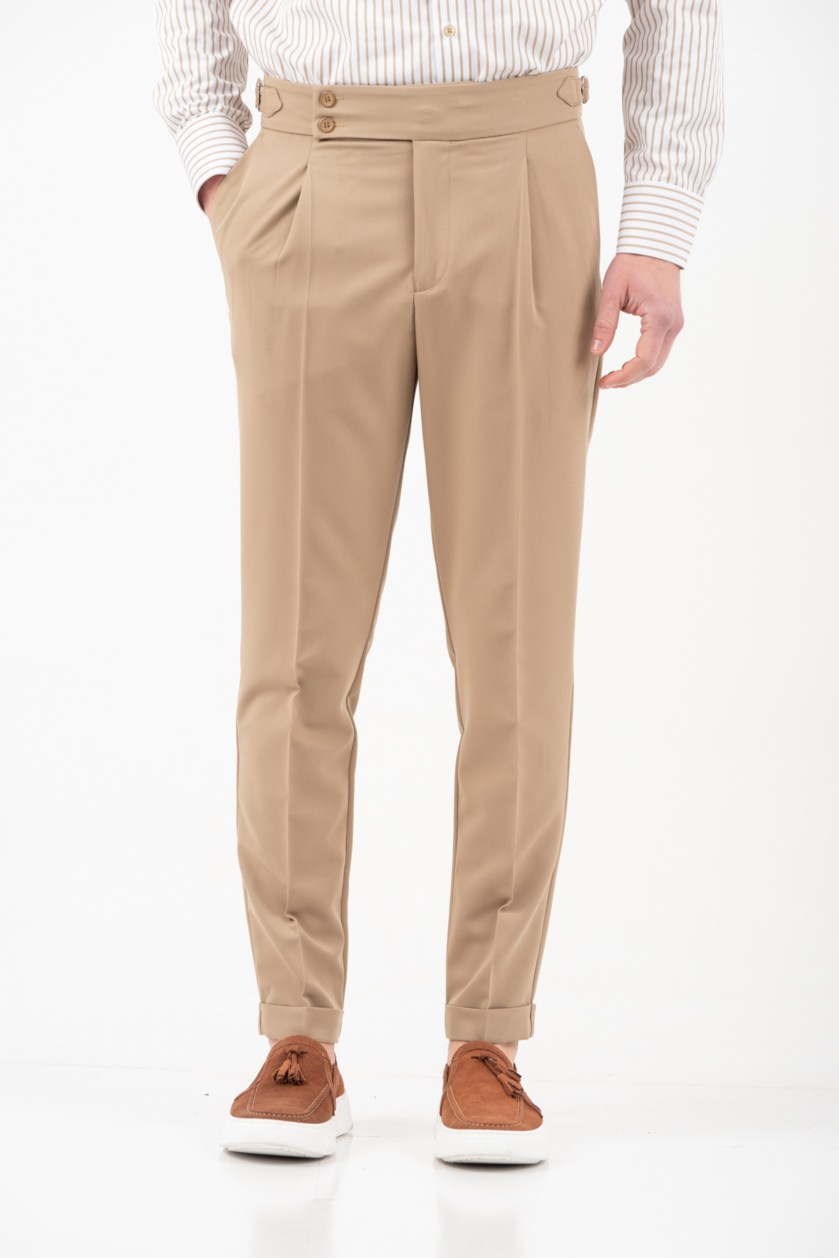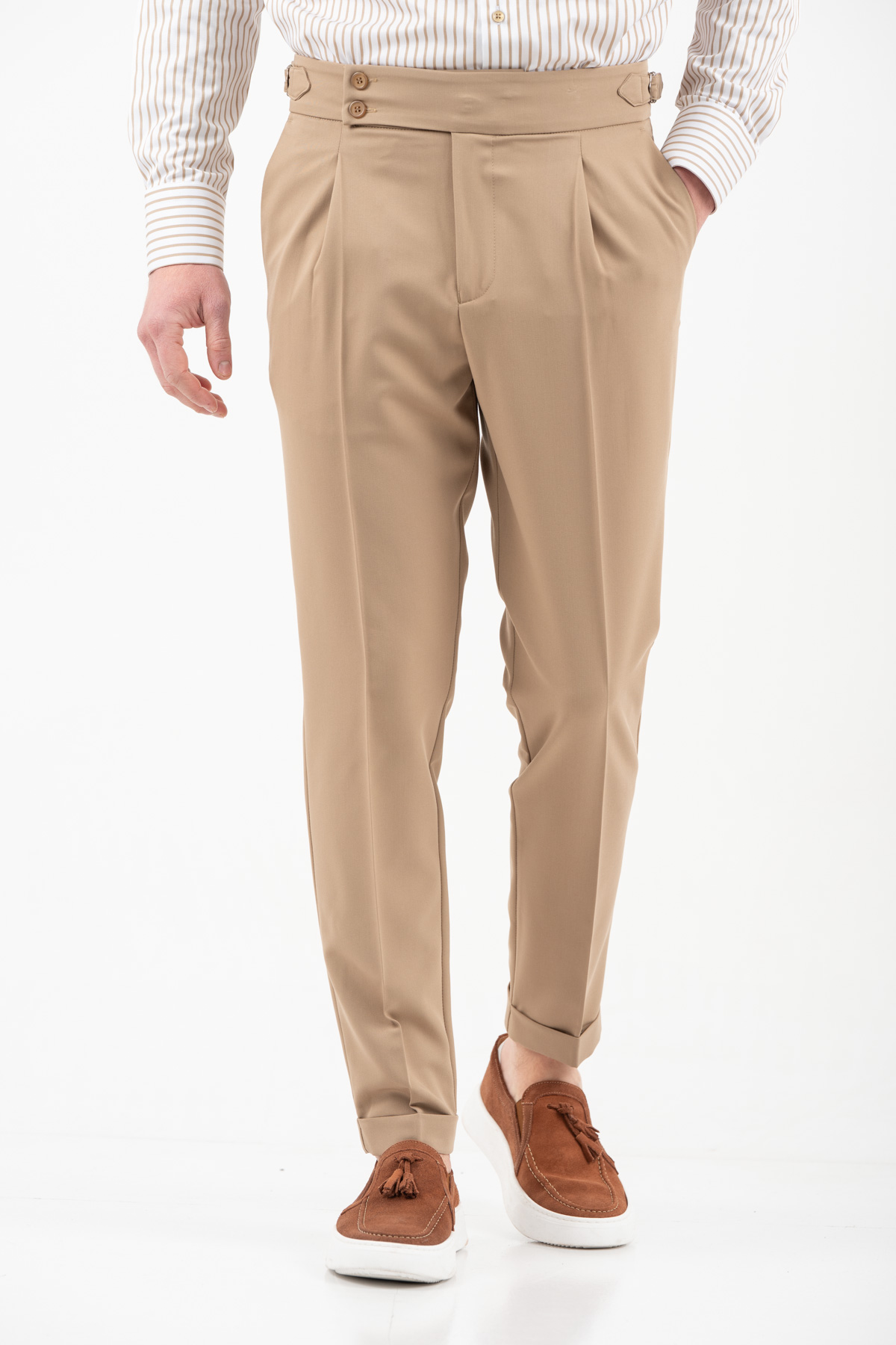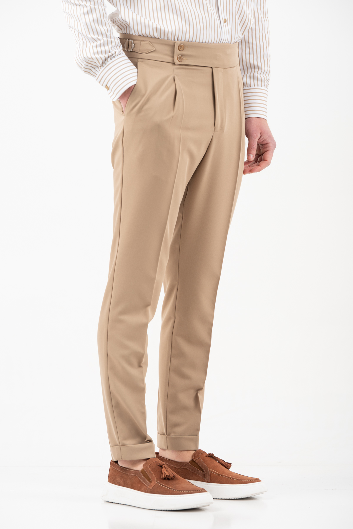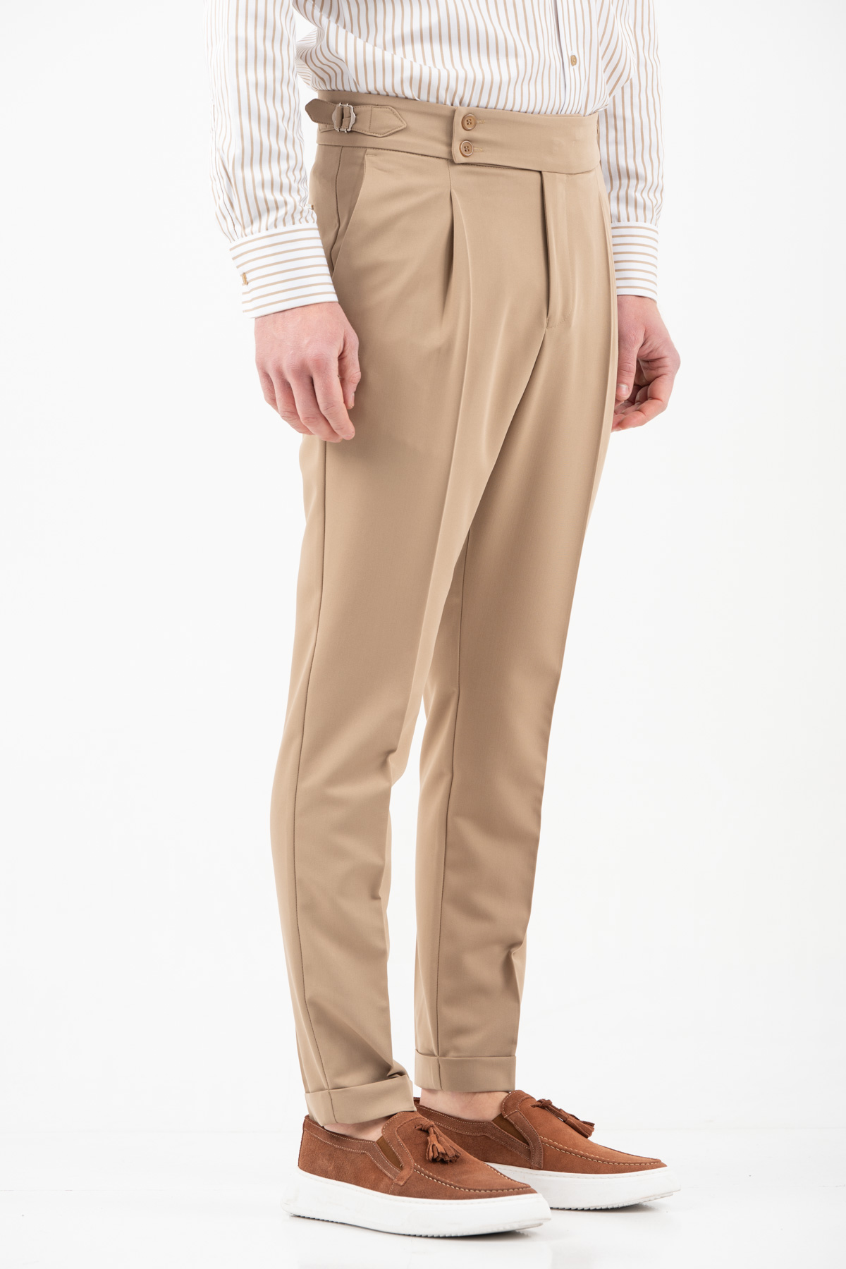-Παντελόνι με πιέτα διπλό κουμπί και αγκράφα στο πλάι
