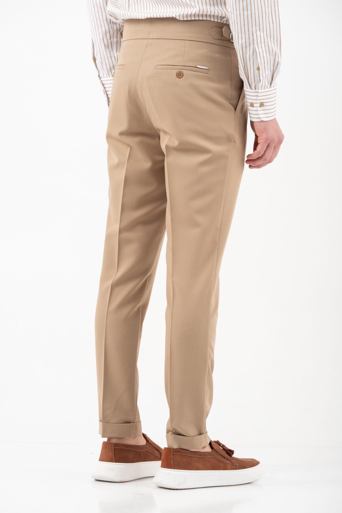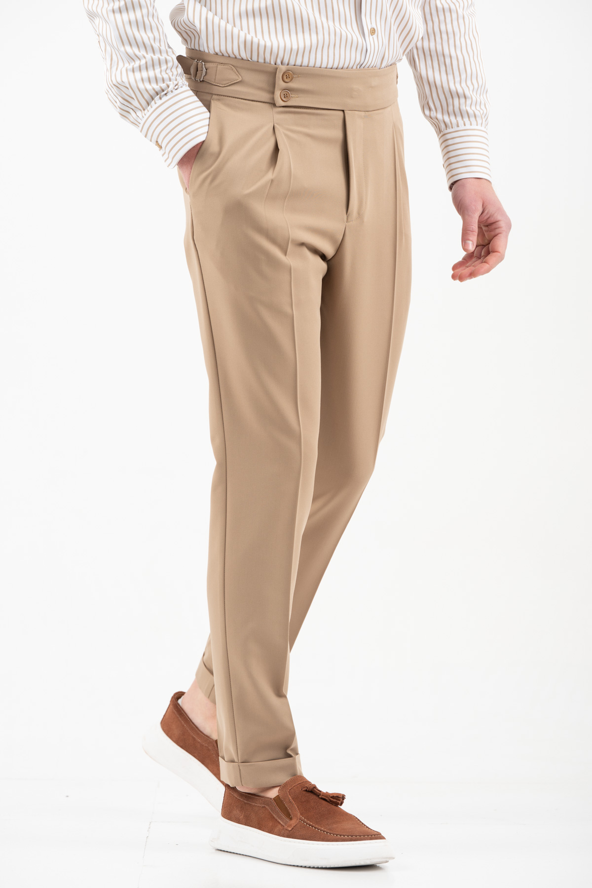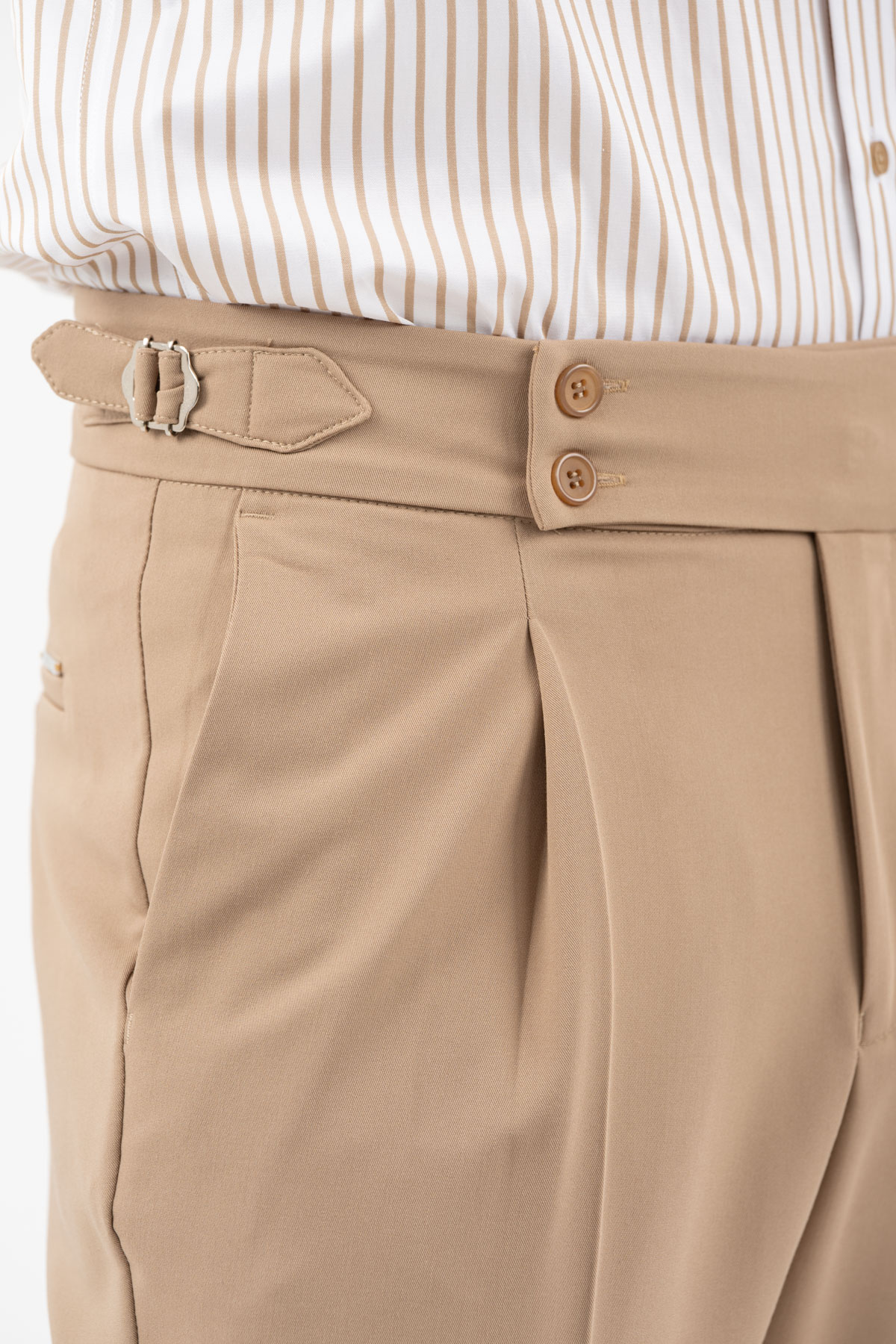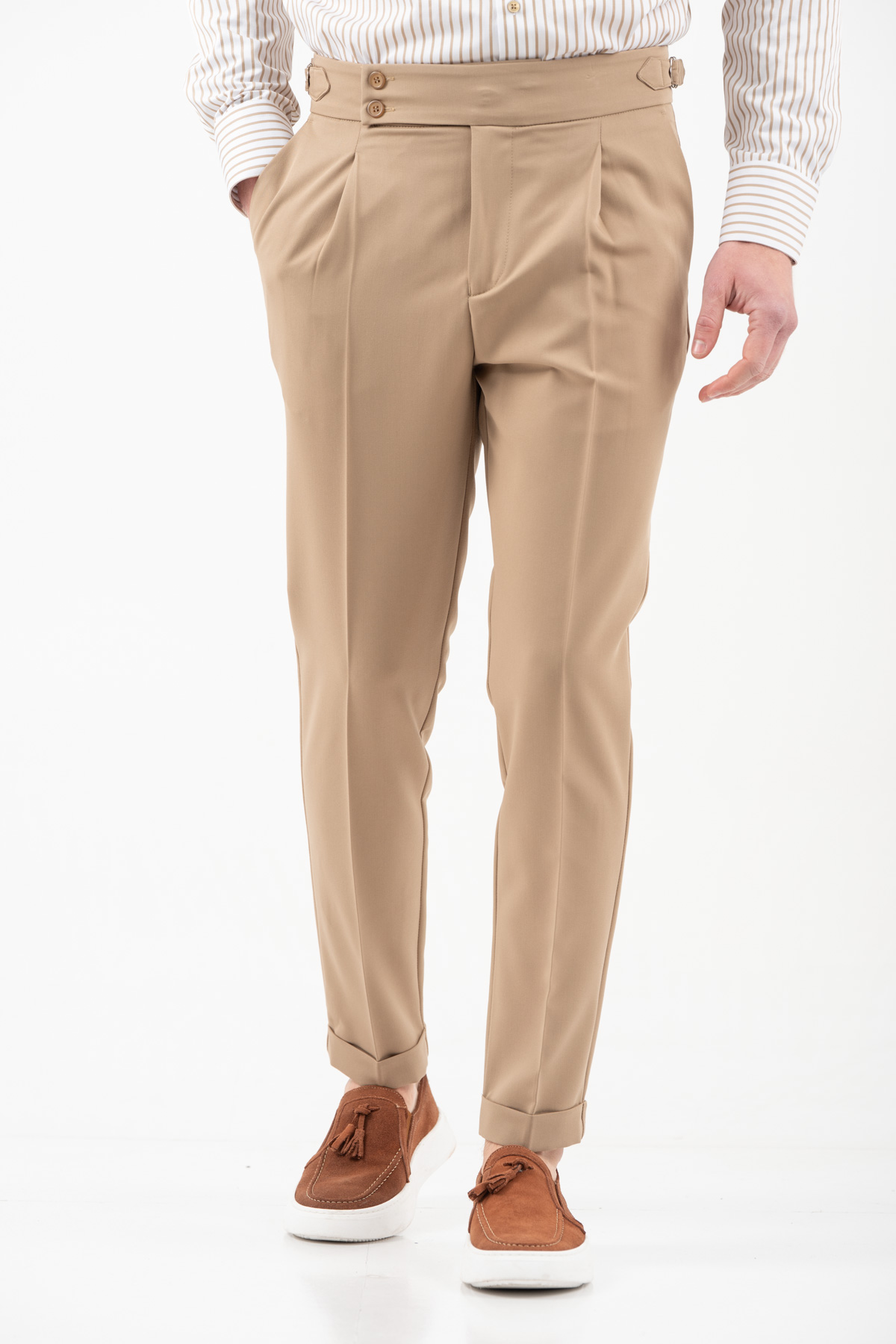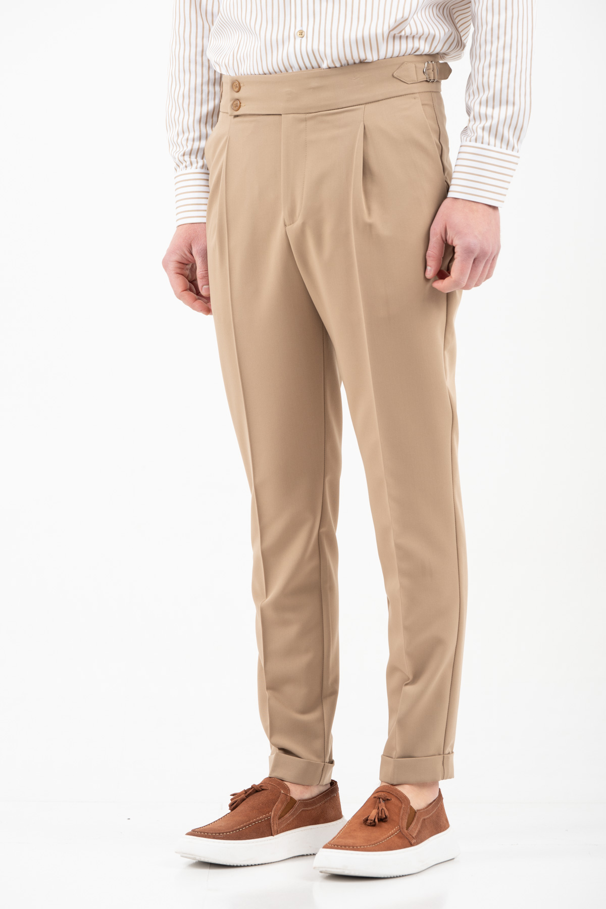 -Παντελόνι με πιέτα διπλό κουμπί και αγκράφα στο πλάι