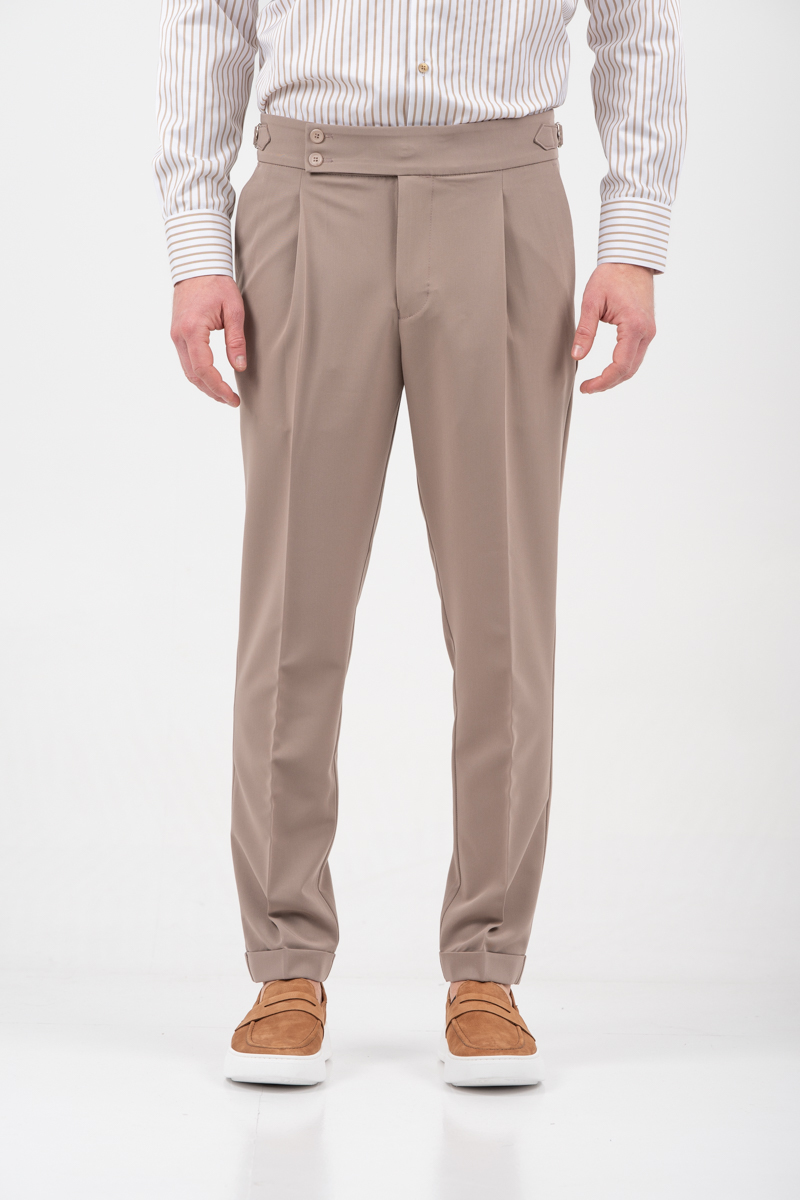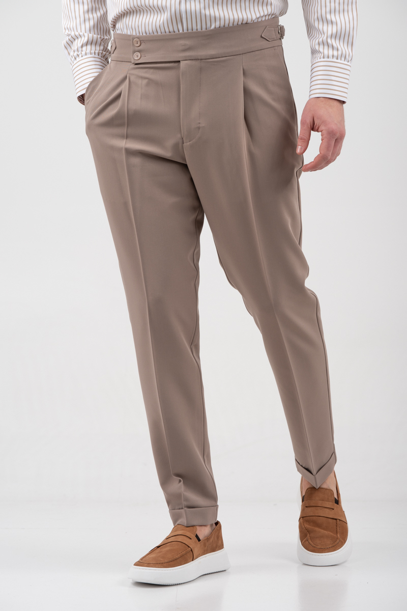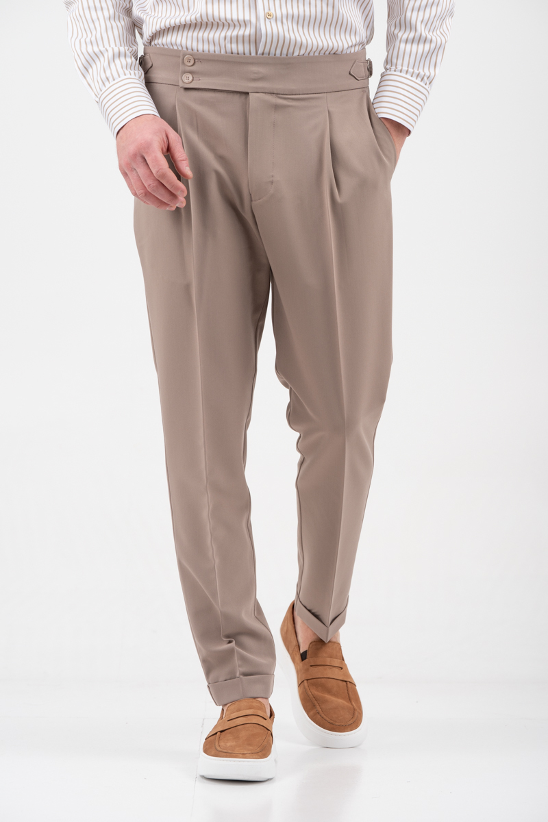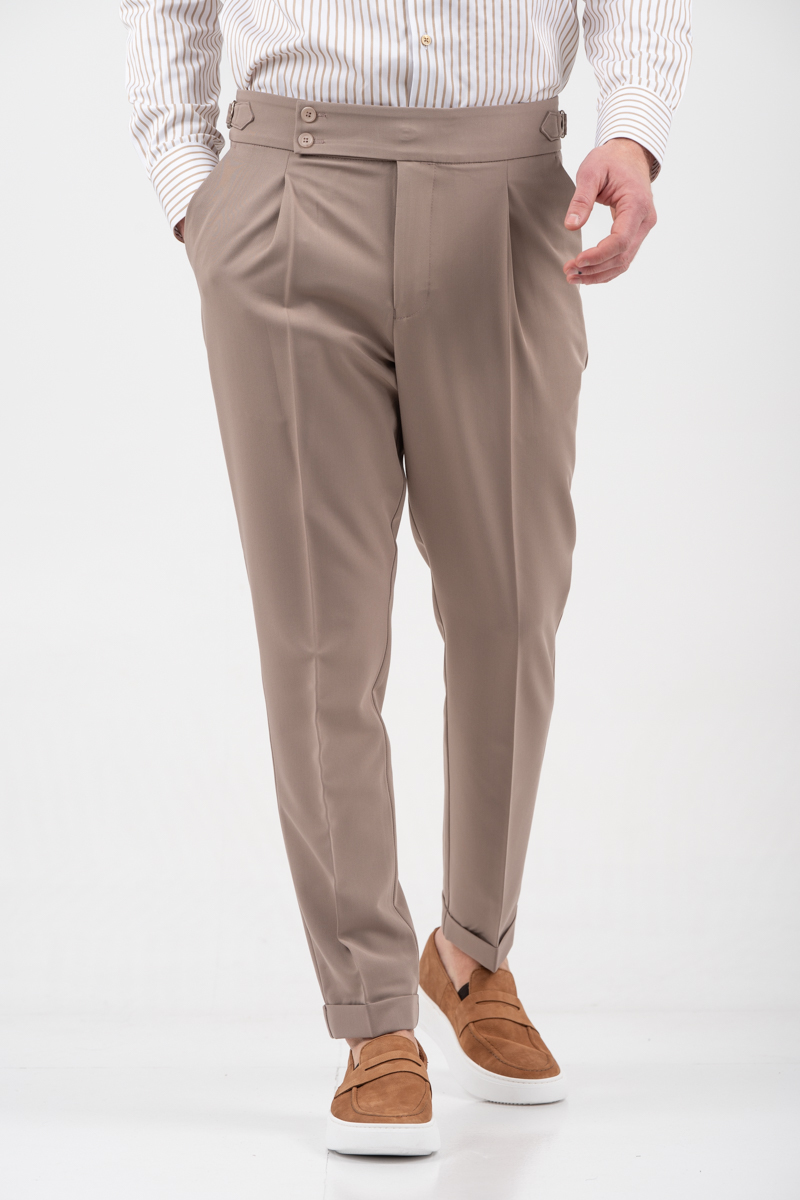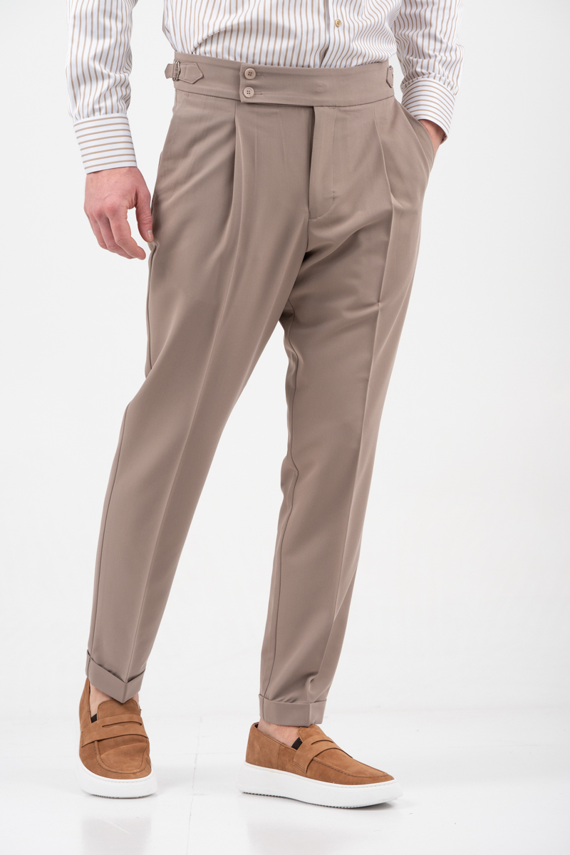 -Παντελόνι δίπιετο με ρεβέρ και πλαϊνές αγκράφες