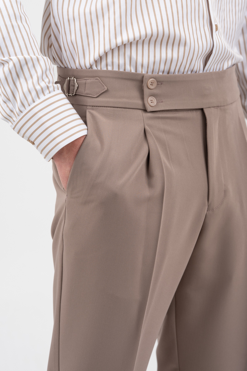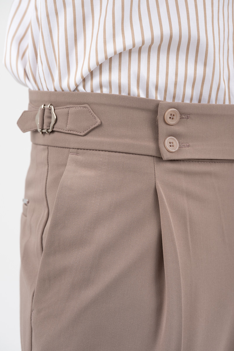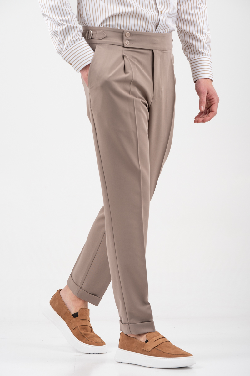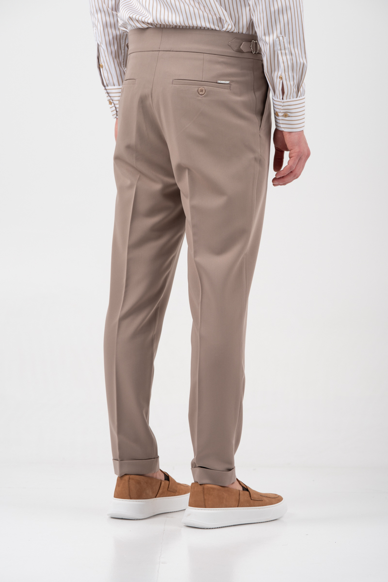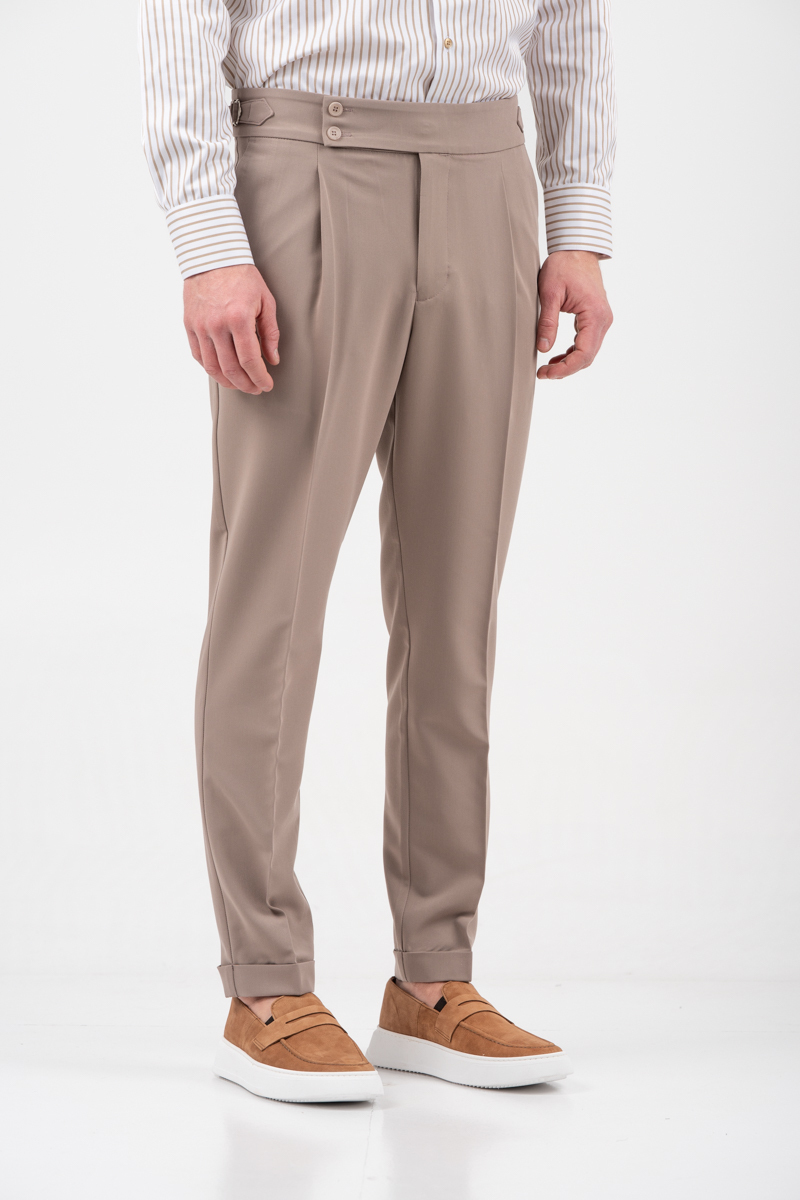 -Παντελόνι δίπιετο με ρεβέρ και πλαϊνές αγκράφες