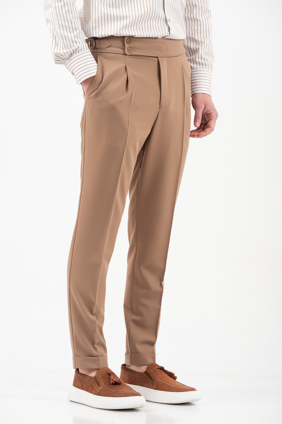 -Παντελόνι με πιέτα διπλό κουμπί και αγκράφα στο πλάι