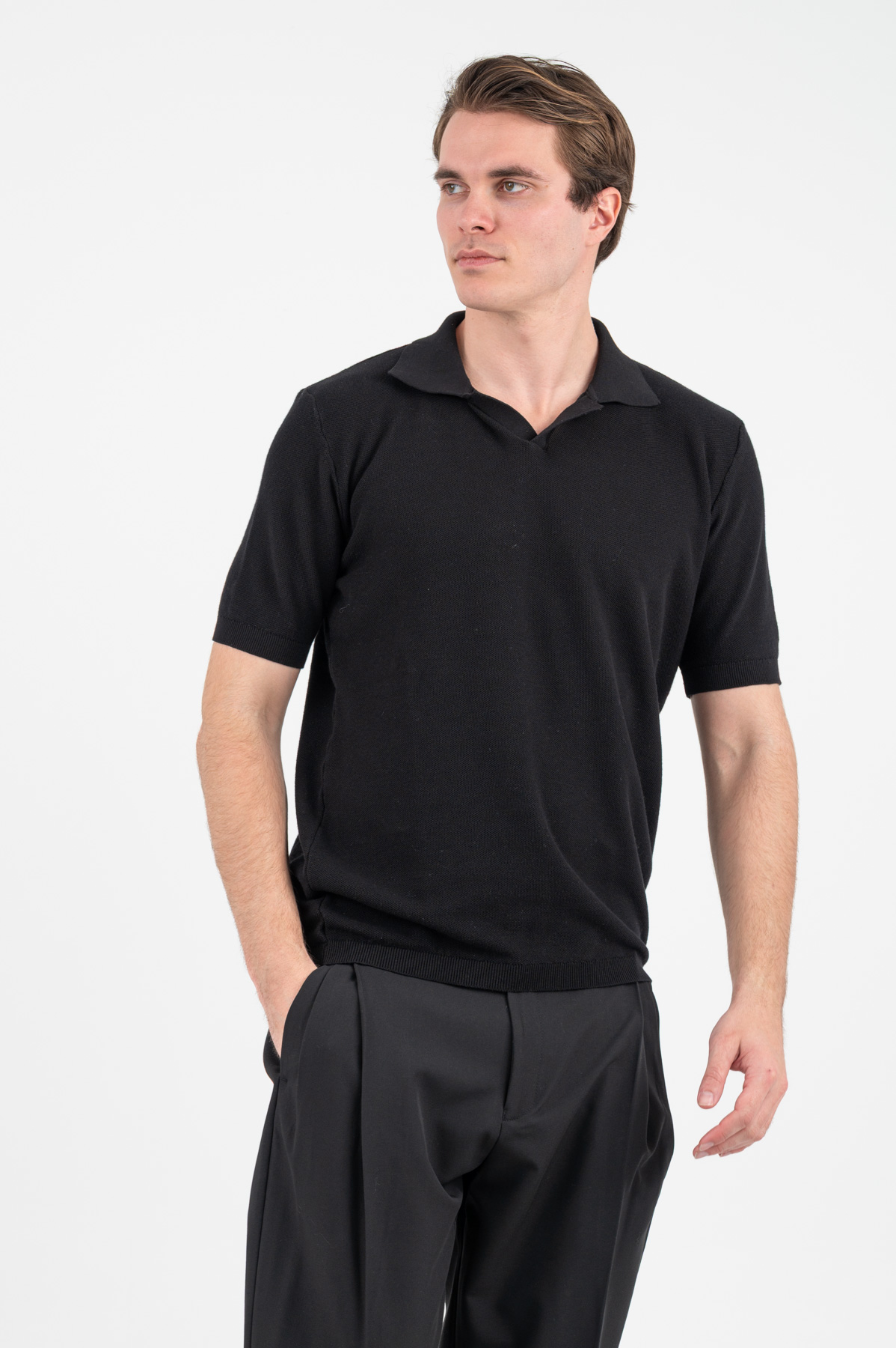 -Πλεκτή μπλούζα polo σε πικέ πλέξη