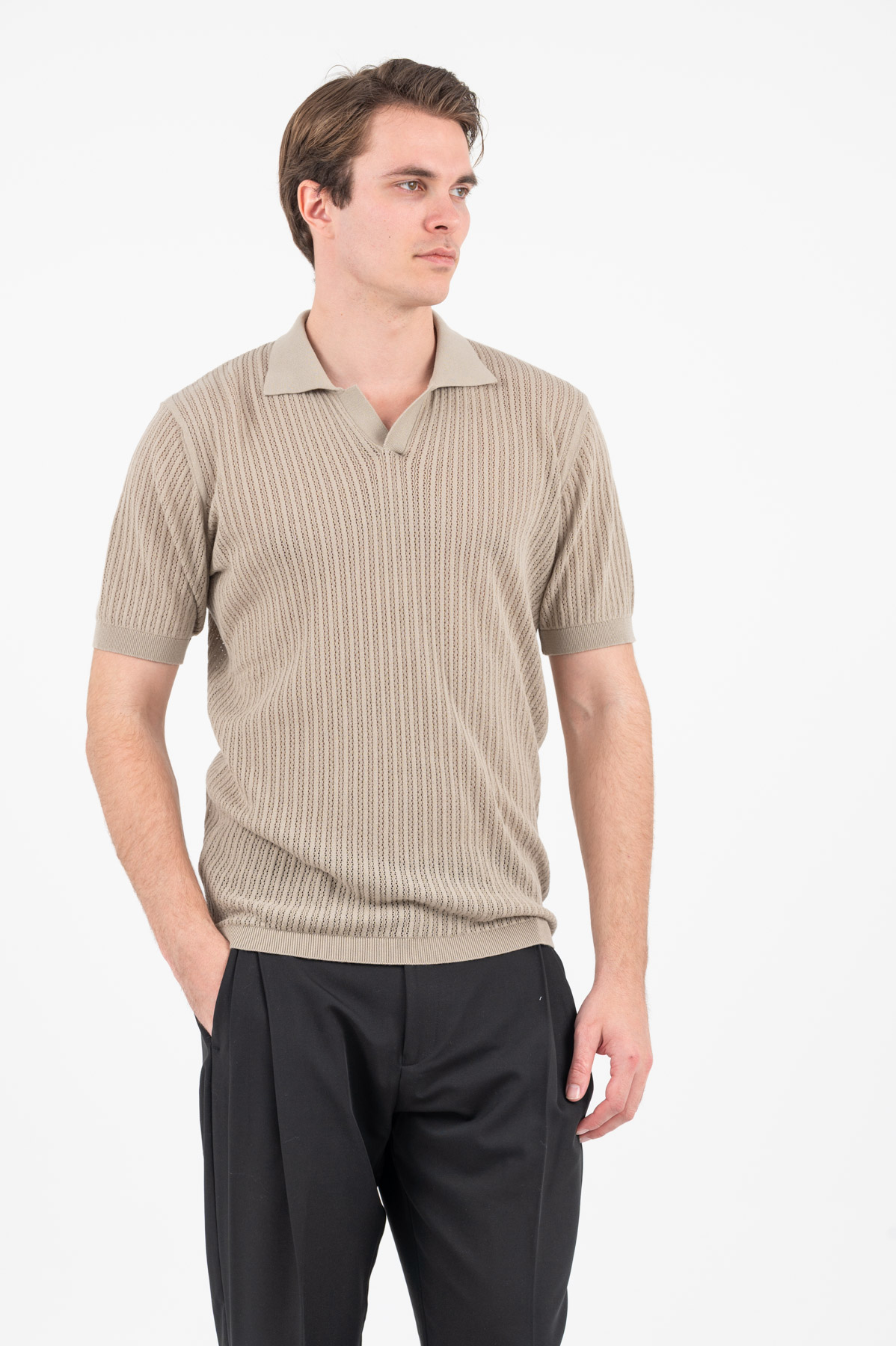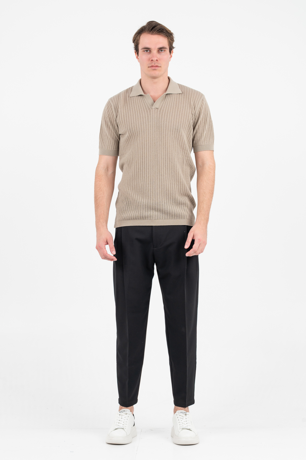 -Πλεκτή μπλούζα polo σε ζακάρ πλέξη
