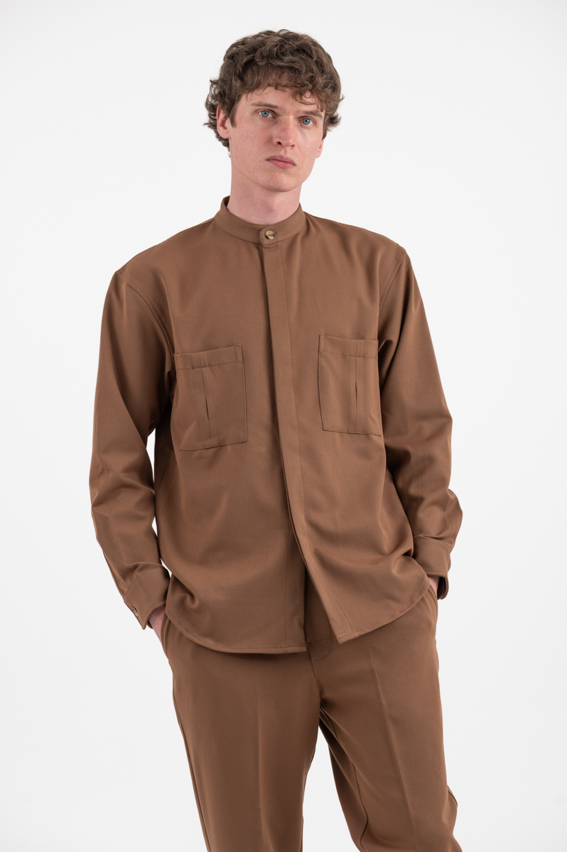 -Overshirt με εξωτερικές τσέπες και mao γιακά