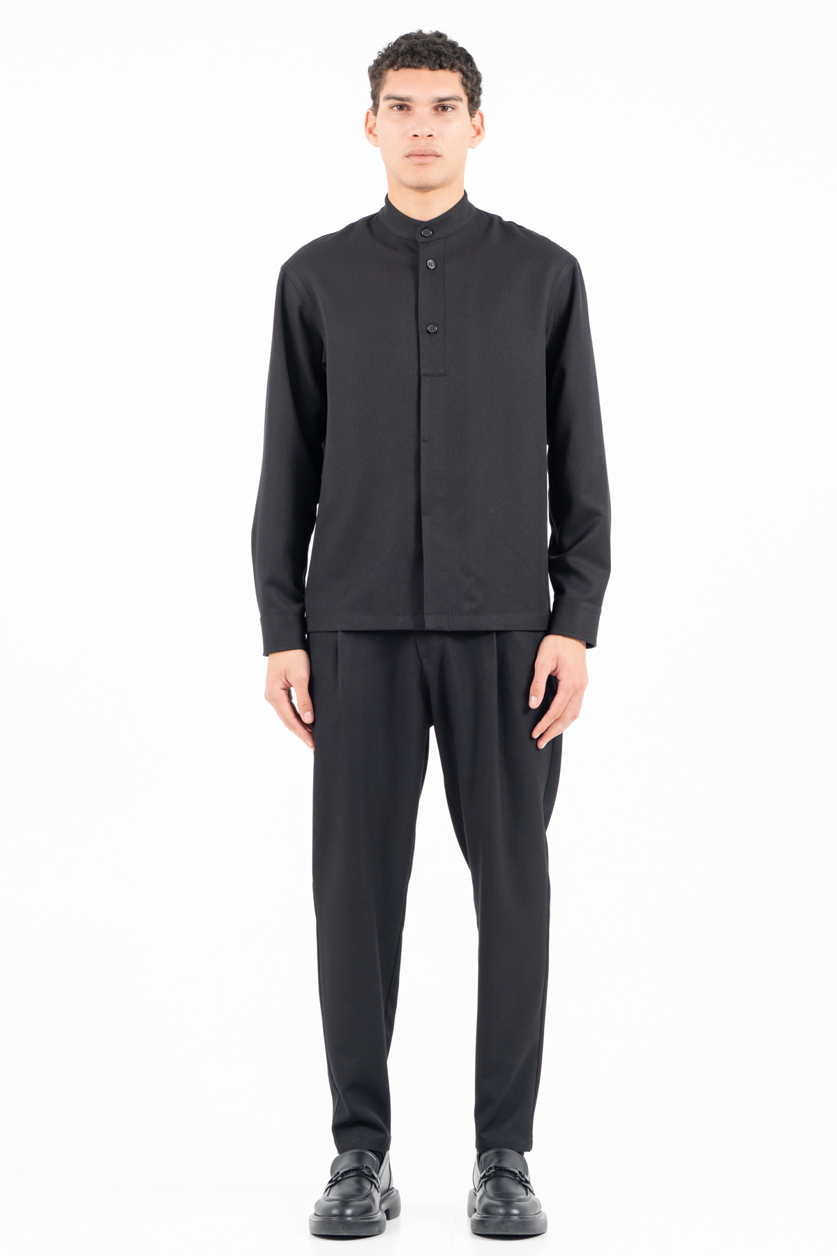 -Overshirt με μάο γιακά και κρυφή πατιλέτα στο κλείσιμο